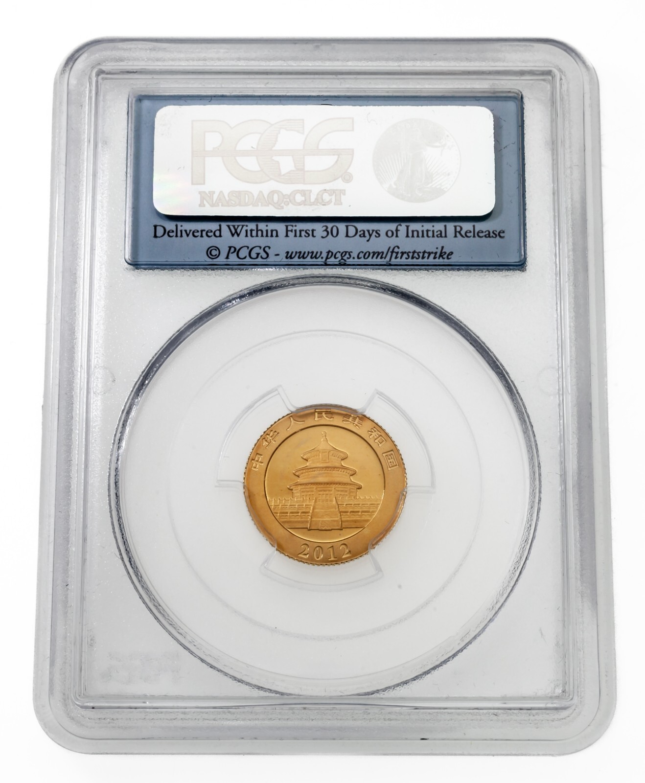 2012 Chine .999 Or 1/10 ML 50 Yuan Classé Par Pgcs Comme MS70 Premier Frappe
