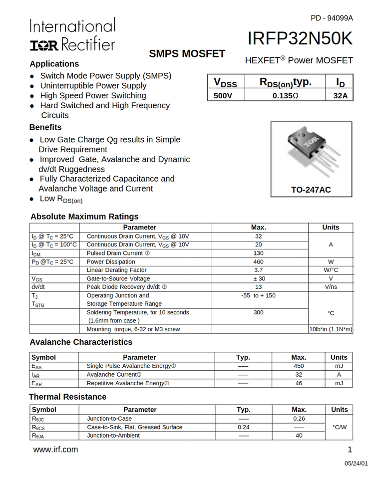 IRFP32N50KPBF, IRFP32N50K, 32N50 |