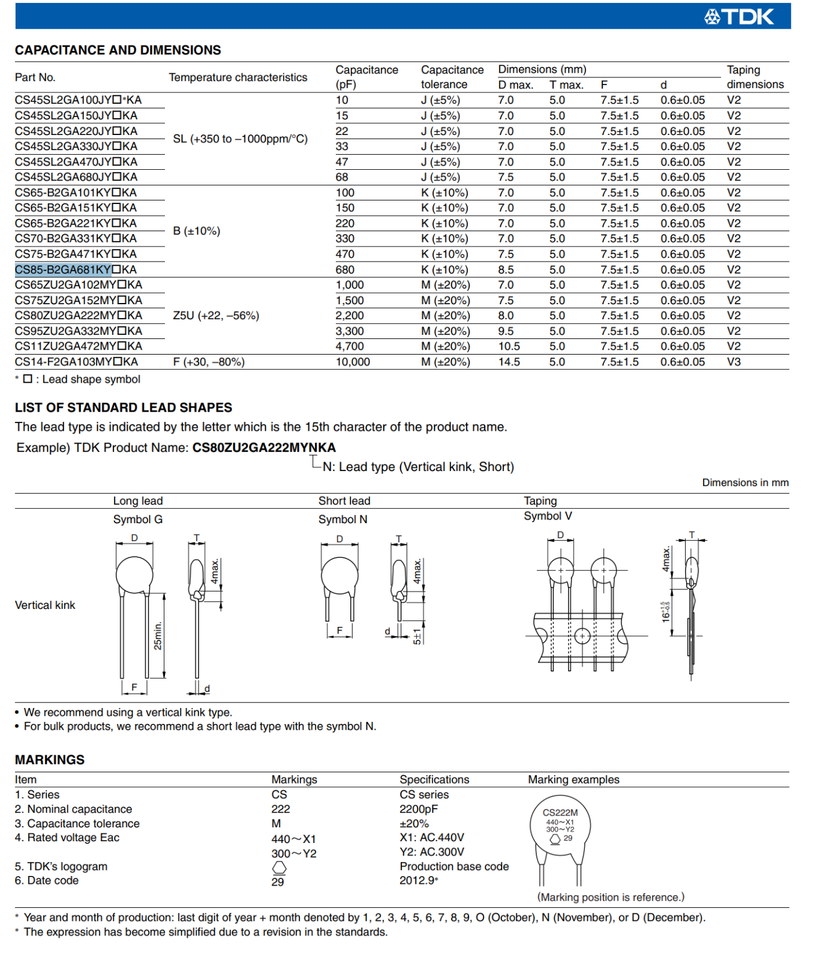 25X CS85-B2GA681KYPKA CS681K Tdk 680pF 10% and 48 similar items
