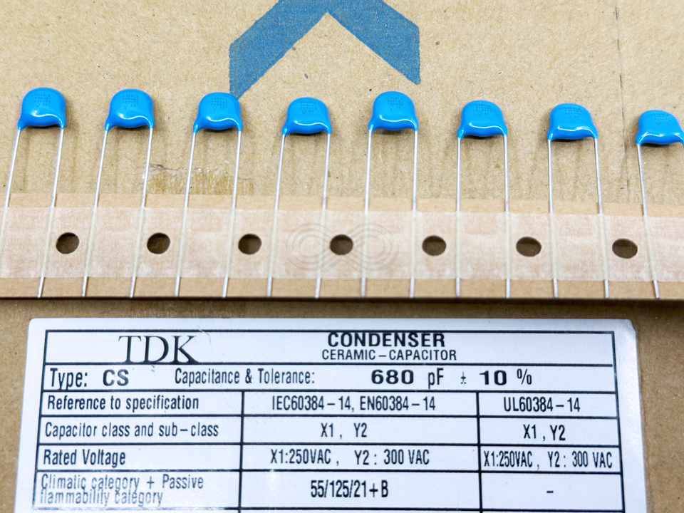 25X CS85-B2GA681KYVKA TDK 680pF 10% X1 Y2 250VAC/300VAC High Voltage 2.6kVAC Ceramic Capacitor LS:7.5mm D:8.5mm