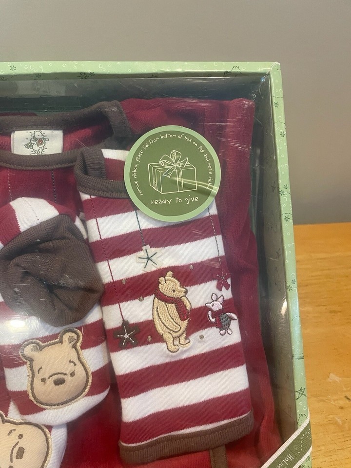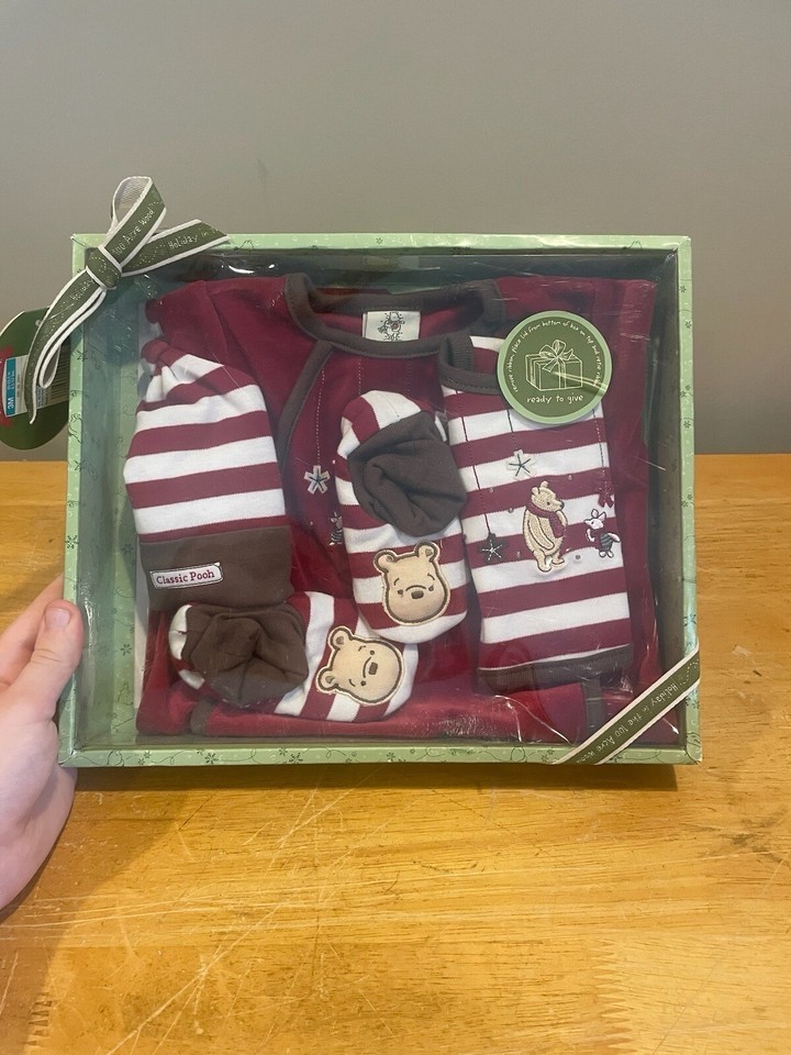 The set is sized for 0-3 months and is made by Disney Baby, ensuring high quality and durability. Whether you're gifting it to a new parent or getting it for your own little one, this Winnie the Pooh outfit set is sure to bring joy and comfort during the holiday season.