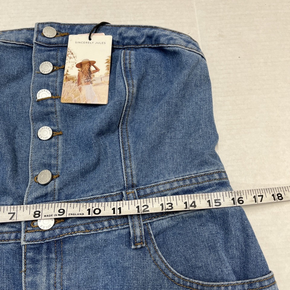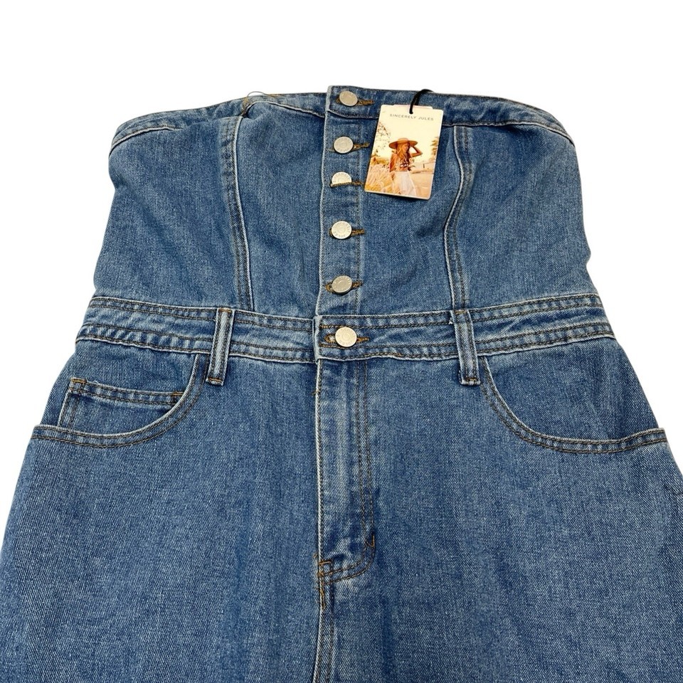Sincerely Jules Y2K Dress Womens L Denim Strapless Cropped Wide Leg Smocked