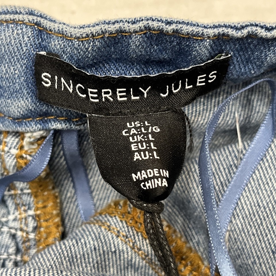 Sincerely Jules Y2K Jumpsuit Womens L Denim Strapless Cropped Wide Leg Smocked