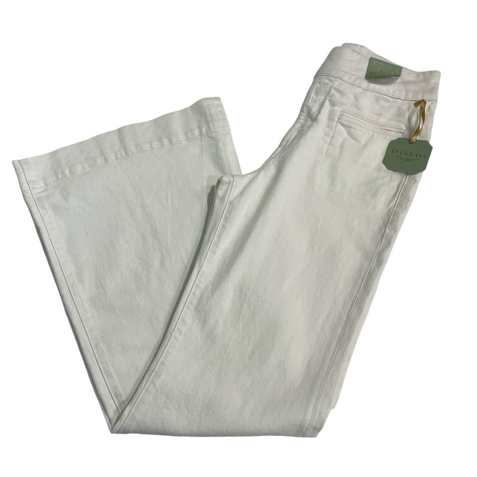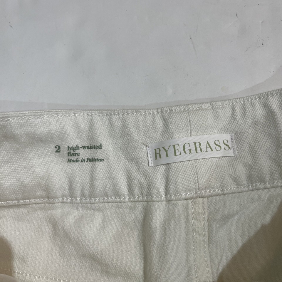 Ryegrass Jeans Womens 2 Flare Leg High Waist White Denim Boho Hippie