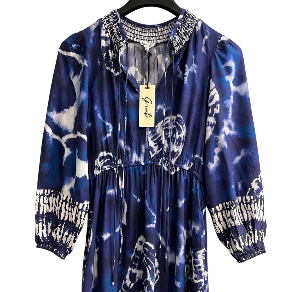 Garrie B Dress Womens S Blue Tie Dye Babydoll Smocked Maxi Boho Hippie Beach
