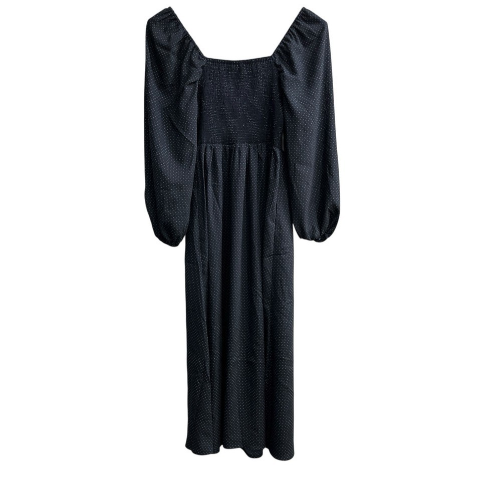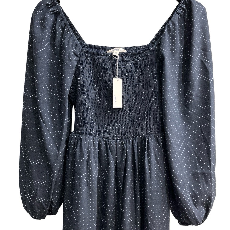 Johnnie O Selena Dress Womens XS Blue Mini Dot Maxi Milkmaid Smocked Coquette