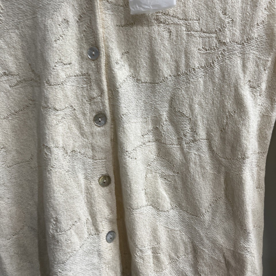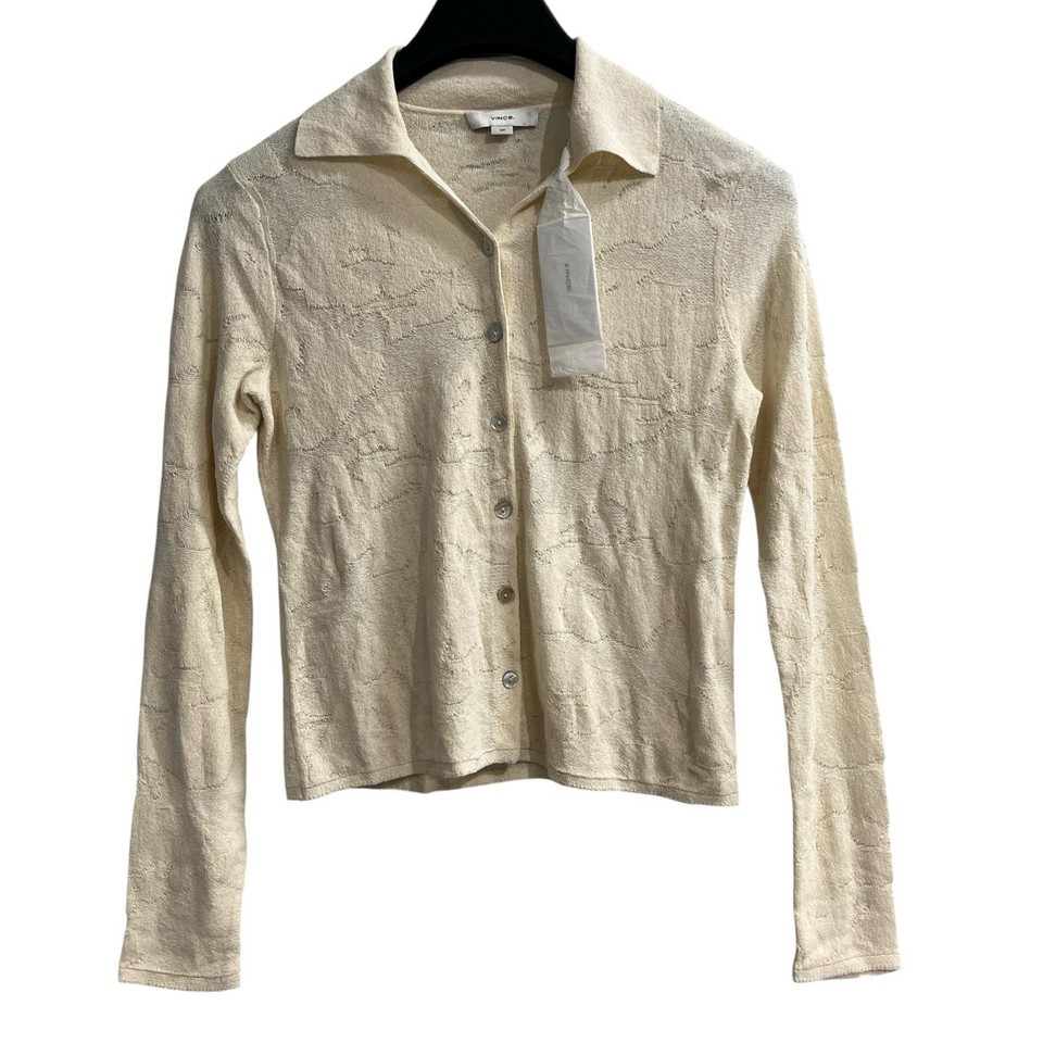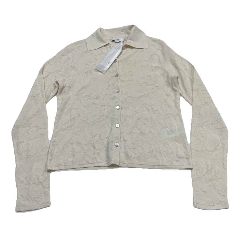 Vince Top Womens S Italian Cotton Blend Ivory Textured Floral Button Up Preppy