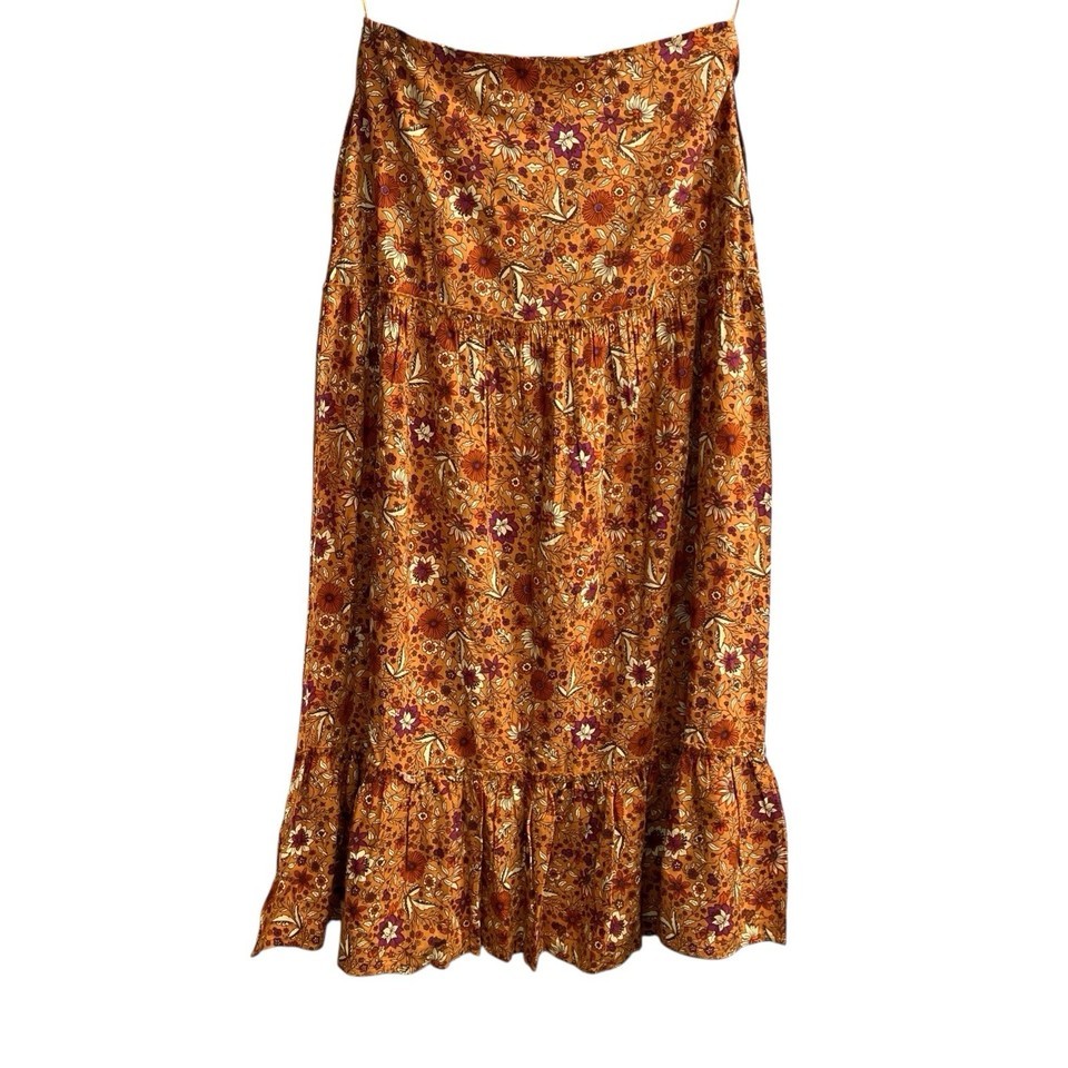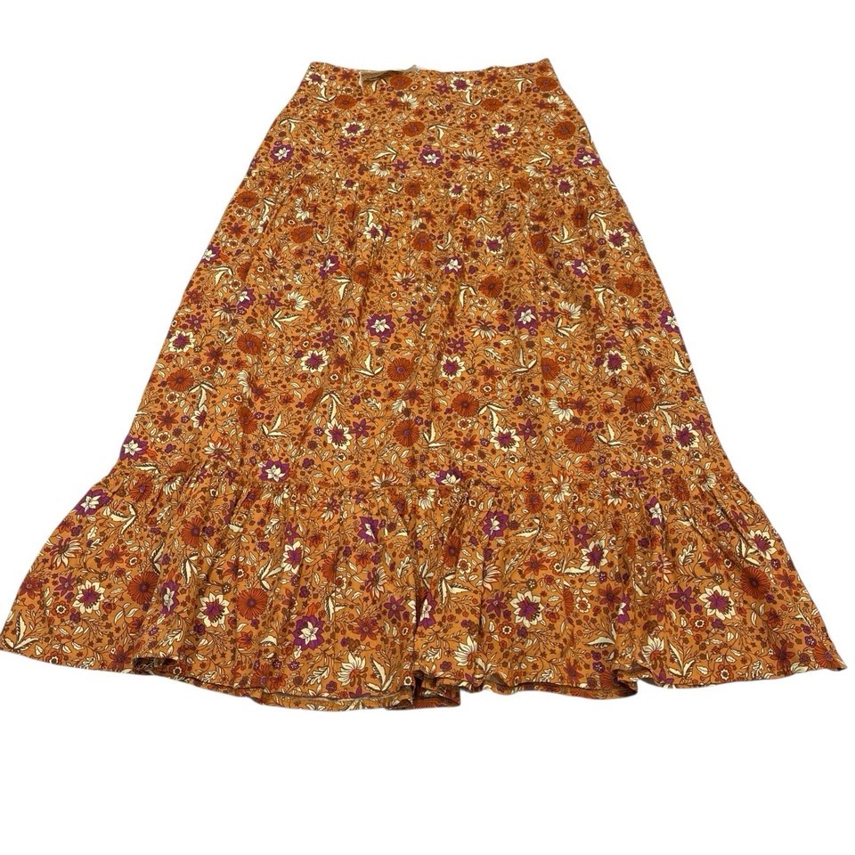 Luna Moon Skirt Womens M Orange Brown Tiered Floral Maxi Boho Hippie Peasant