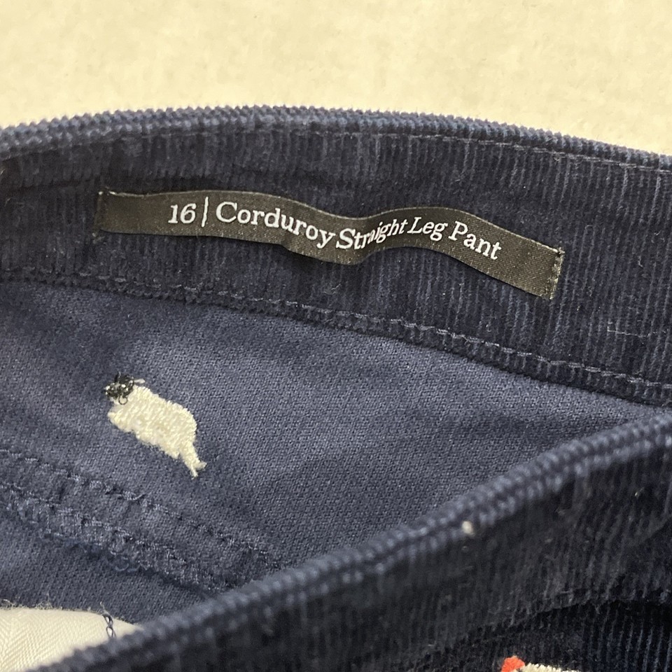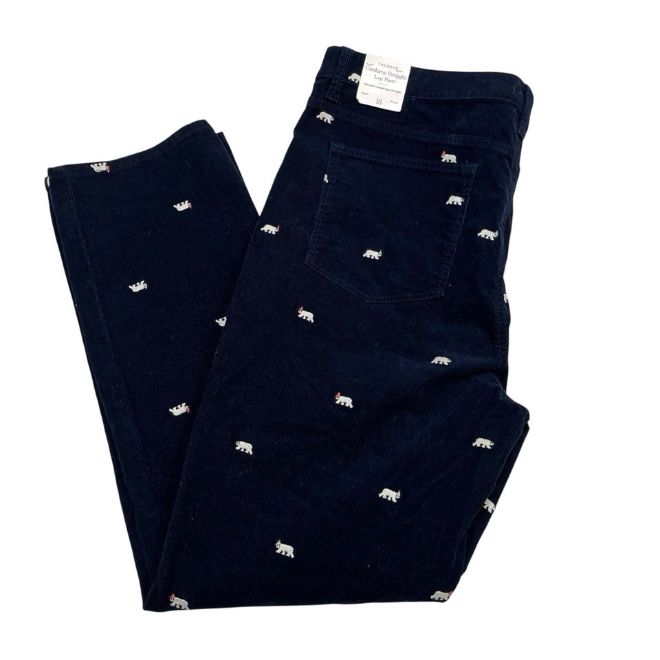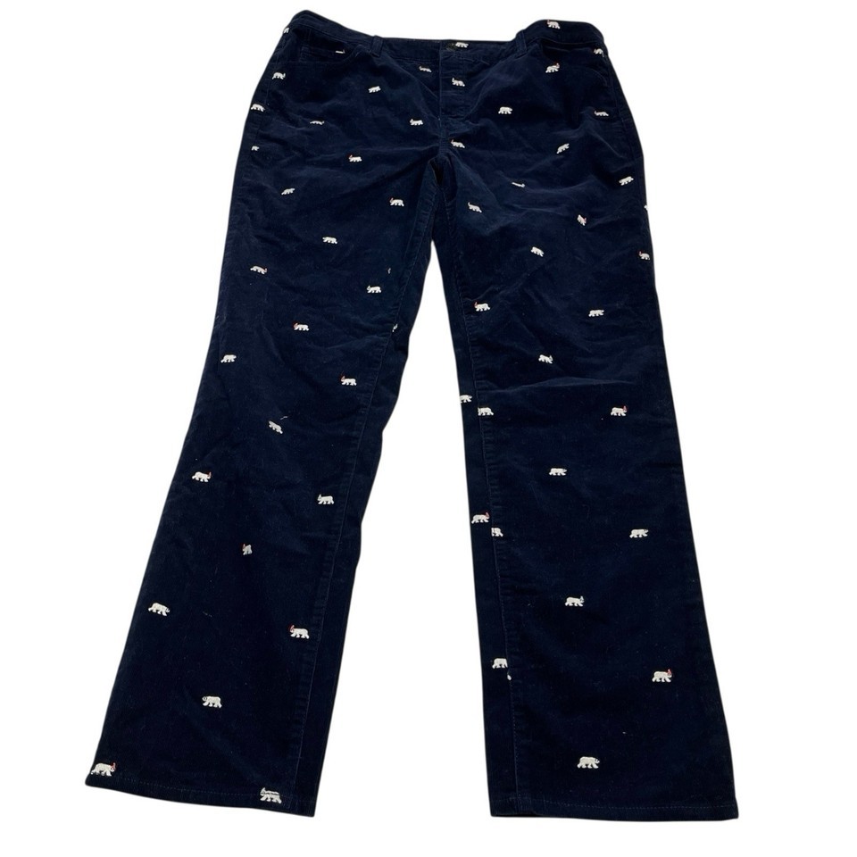 Talbots PantsWomens 16 Blue Corduroy Straight Leg Polar Bear Embroidered Winter