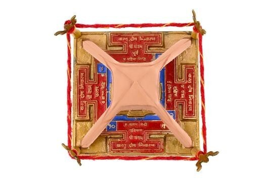 The Shree Vastu Chowki is made in brass with Trident (Trishul) on each corner and a Shree Yantra in centre with pyramid at top. The Shree Vastu Chowki is a very powerful Vastu correction tool. Place in prayer altar or East portion of your home/altar.