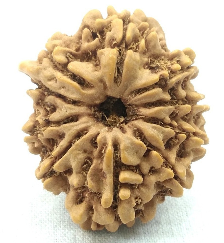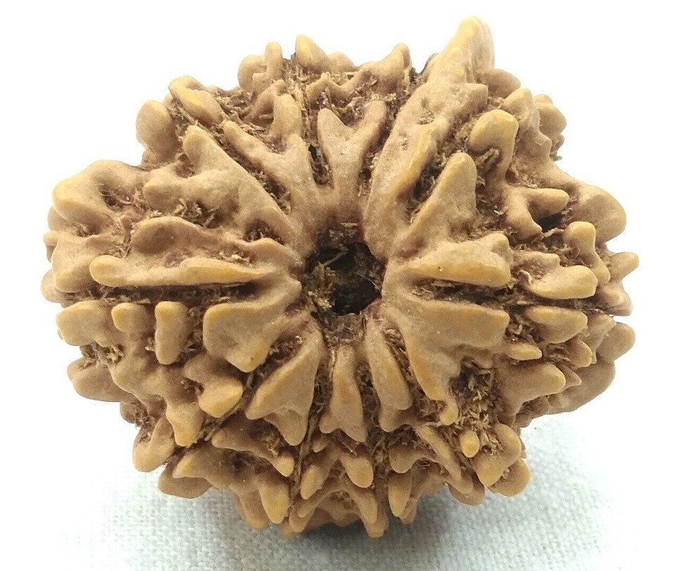Eine Rudraksha mit 10 Gesichtern ist General einer Armee und auch Visnu selbst. Es sublimiert die bosartigen Auswirkungen von Planeten, bose Krafte und beseitigt Schlangen.