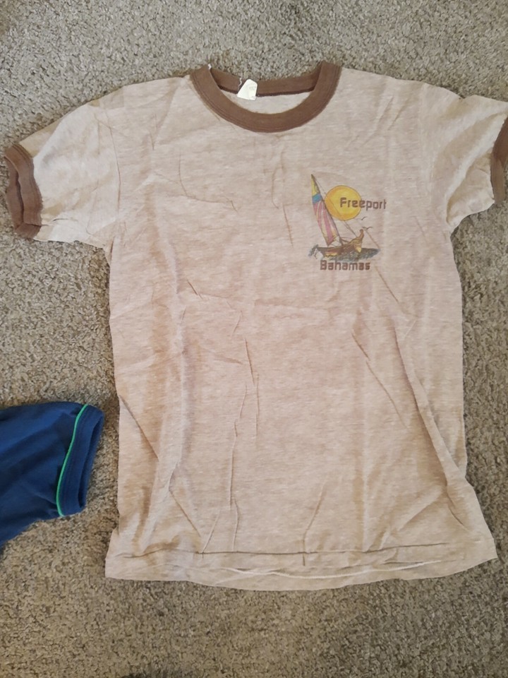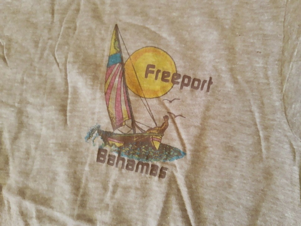 VTG RARE 70s 80's T-shirt Ringer Freeport Bahama's Brown Sailing Small Med. S M