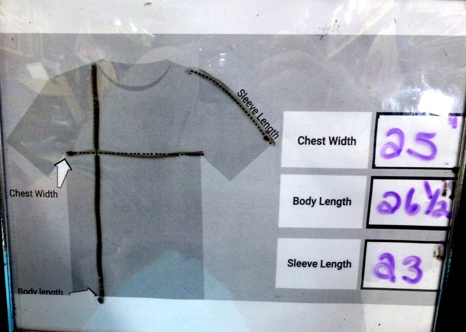 Chest Width = 25 inches, Body Length = 26.5 inches, Sleeve Length = 23 inches