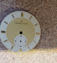 NEW RARE Vintage 70's 80's Hamilton Watch Dial Face White Cream w/ Gold Markers - I am not an expert. If you know something more about this watch dial please let me know.....? - 1" at widest point this is a piece of history. If you fix old watches you are in luck. I am not an expert on watches. I bought a big lot of old watch parts from a family watch-repair business that went to auction. They had been in business for 100 years. PLEASE - check out my other vintage watch parts we will be listing more over the next number of months. I will give you a deal if you want multiple orders!! FREE USA SHIP