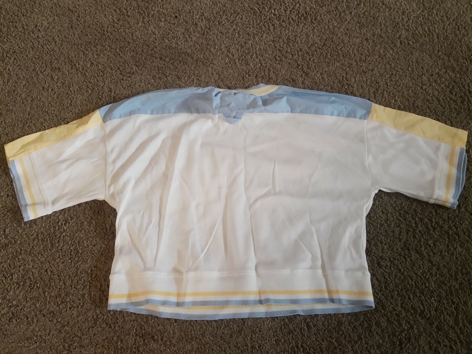 This is nice crop top. Straight out of the 80's!! Literally. We got this from seized storage unit that had not been opened since 1990. Everything in this is old and from rich older single lady