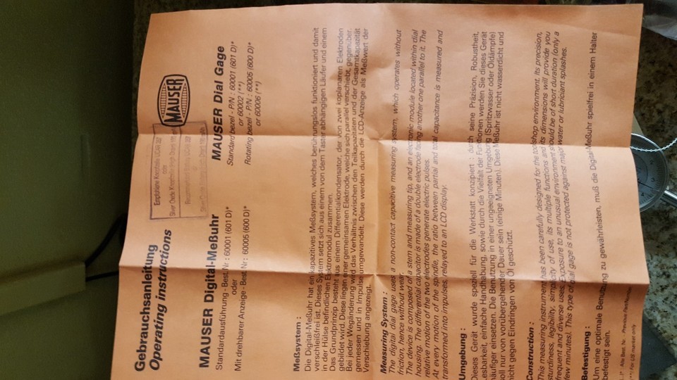 RARE Mauser Digital Dial Gage Machinist Capacitive w/ case PN # 60001 / 60002 MINT This is good stuff here. This is working gauge - seems to have no issues Will work or money back. May have to be re-calibrated No attachments. NIce case. Get yours today FREE USA SHIP please check out my other machinist parts and tools. We got alot from a big business that went under.