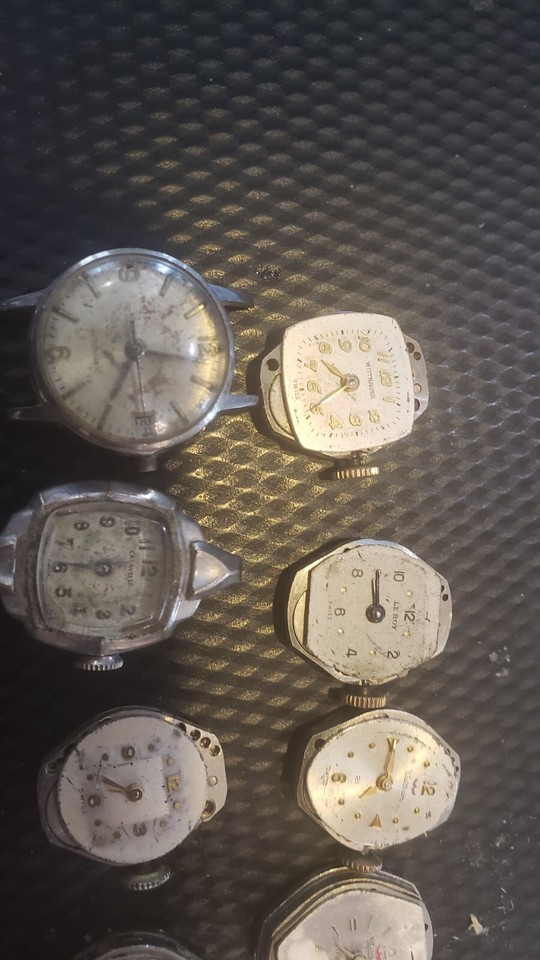 RARE LOT of 8 40's 50's Vintage Ladies Watch Movements Caravelle Vulcain Grant I am not an expert on these. We got a huge supply off a watch maker that went out of business years ago. This is nice movement LOT. Not sure where the rest of this is. But hopefully you can use this!!!! This should be good buy for watch maker / repairer. NOTE - this is awesome. . I am not an expert on these. Please let me know if you know something or if I should change something on the listing one of these I cannot make out the company (2 Walthams, 1 Le Roy, 1 Caravelle, 1 Vulcain, 1 Witthaur Please check out my other vintage watch parts. we have lots of them and more to list. I will give deals on multi-orders!!!! FREE SHIP IN USA