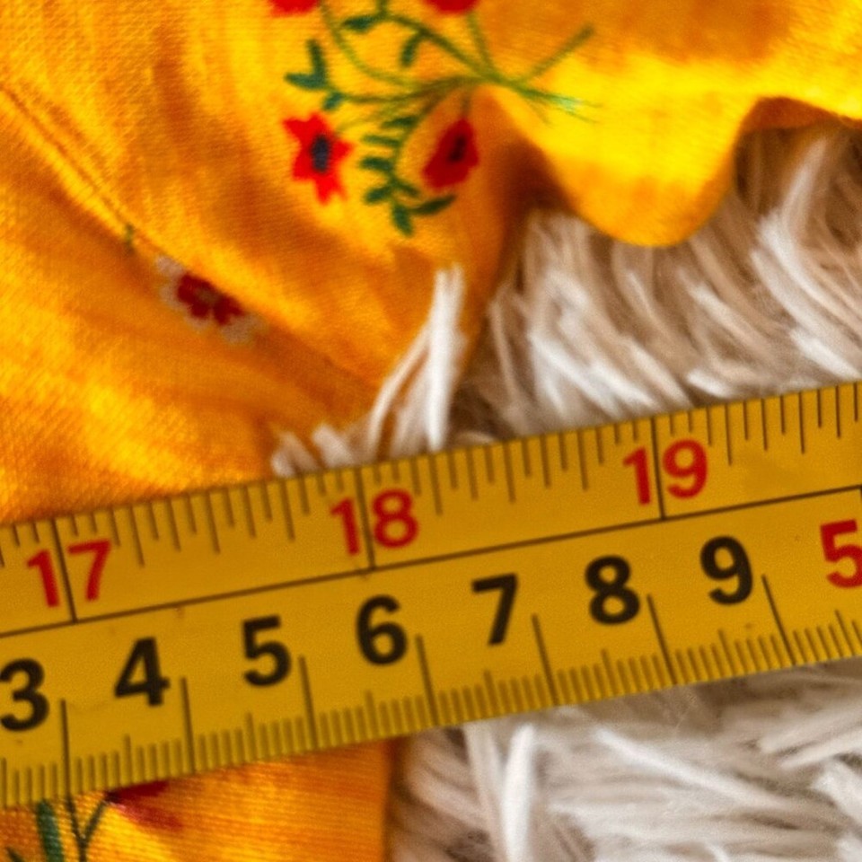Color: Mustard yellow with multicolor floral print