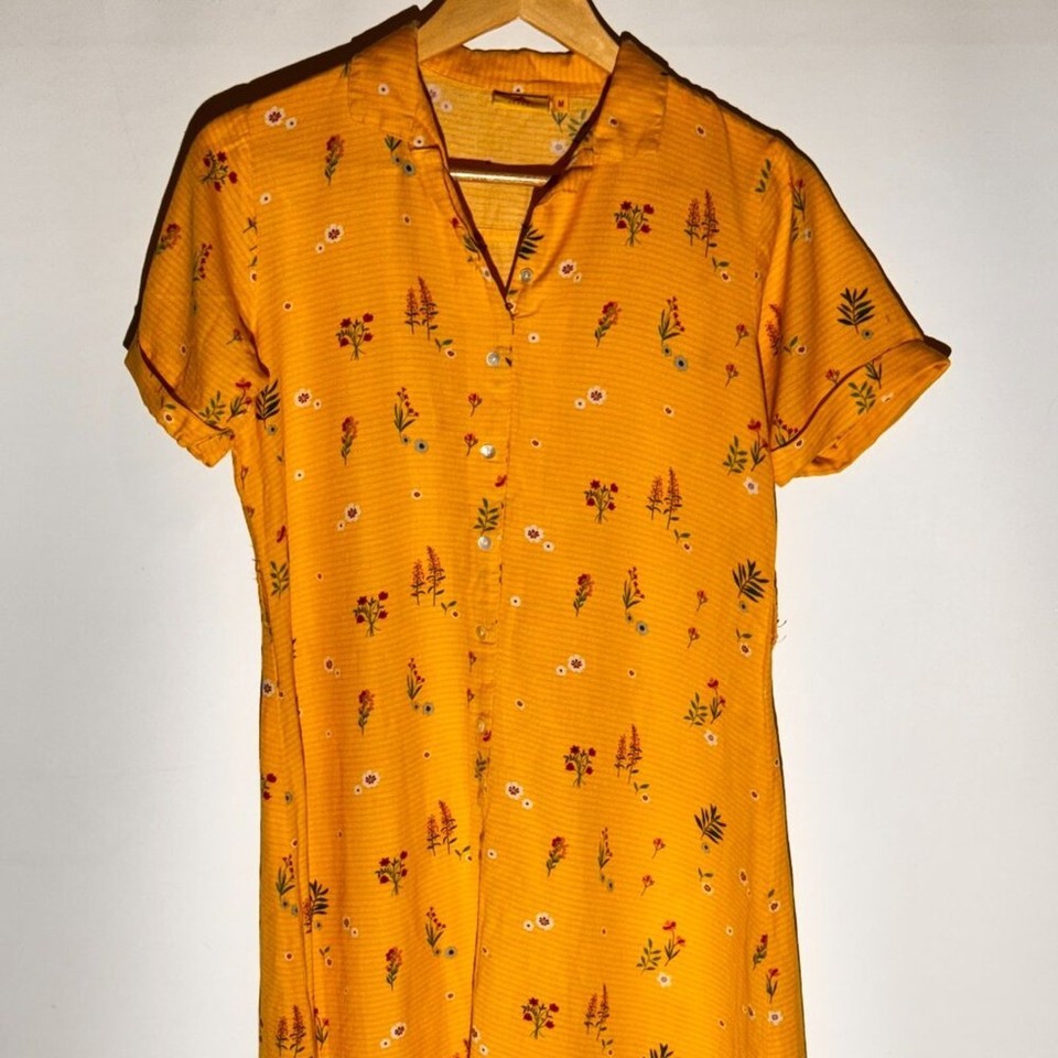 Ateesa Yellow Floral Button-Down Shirt Dress – Size M