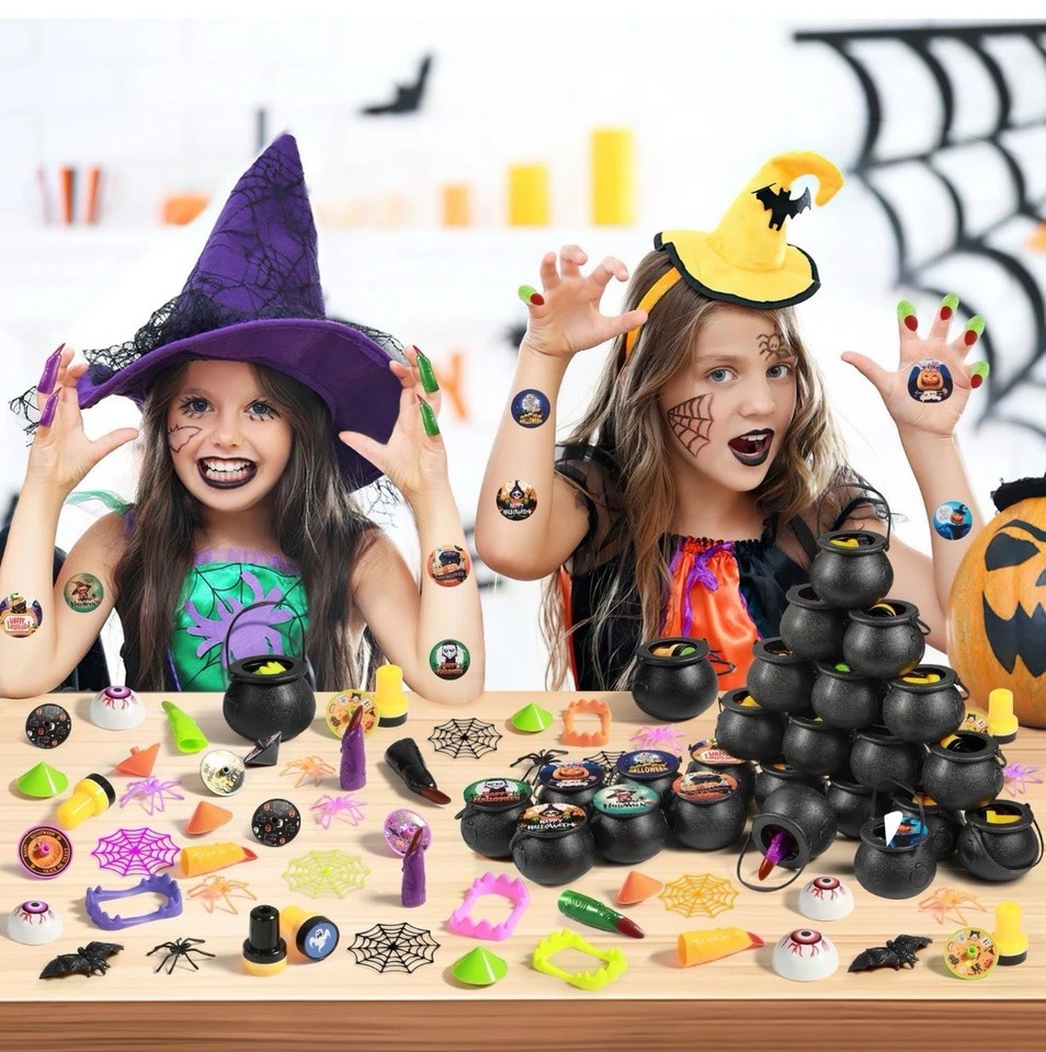 240Pcs Halloween Party Favors for Kids 24 Pack Mini Witch Cauldron Prefilled