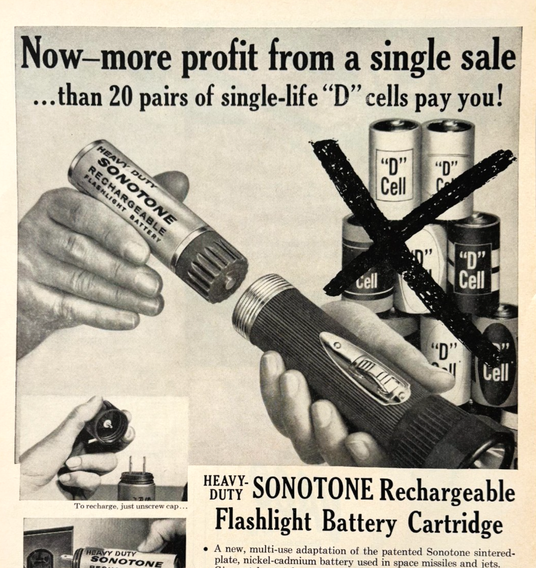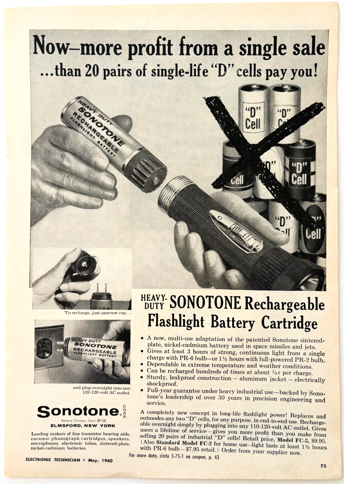 1960 Sonotone Rechargeable Flashlight Battery Advertisement Vintage DWU16D