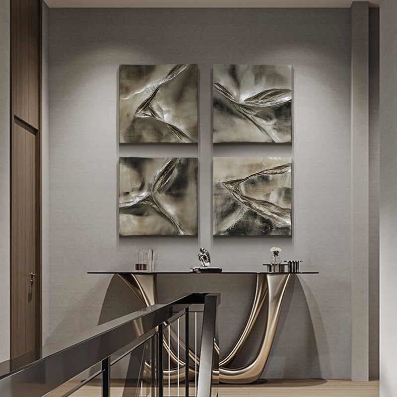 Product description: Transform your living space with this exquisite 20x20 inch modern minimalist wall art by Interoknack. The striking gray 3D relief texture creates a captivating visual experience through its hand-painted abstract design, adding depth and dimension to any room. This frameless decorative panel seamlessly integrates into contemporary interiors, making it perfect for living rooms, entryways, and dining areas. The artisan-crafted surface produces fascinating shadow play that changes throughout the day, bringing your walls to life with subtle sophistication. Lightweight yet durable, this versatile square format works beautifully as a standalone statement piece or as part of a curated gallery wall arrangement. Elevate your home decor with this tactile, sculptural artwork that combines minimalist elegance with textural richness.