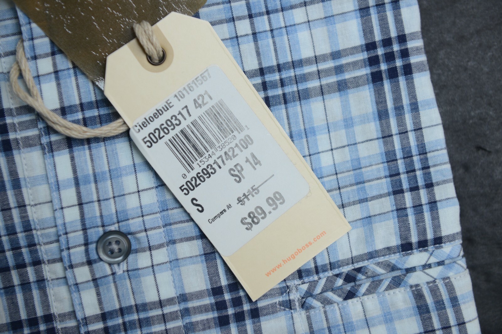 NWT Hugo Boss Men's Cieloebu Slim Fit Lightweight Blue Check Cotton Coton Casual