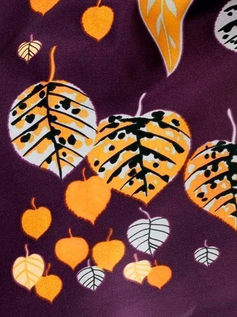 Vintage Acetate Scarf Fab Abstract Leaf Pattern Eggplant Gold Silver 1950s