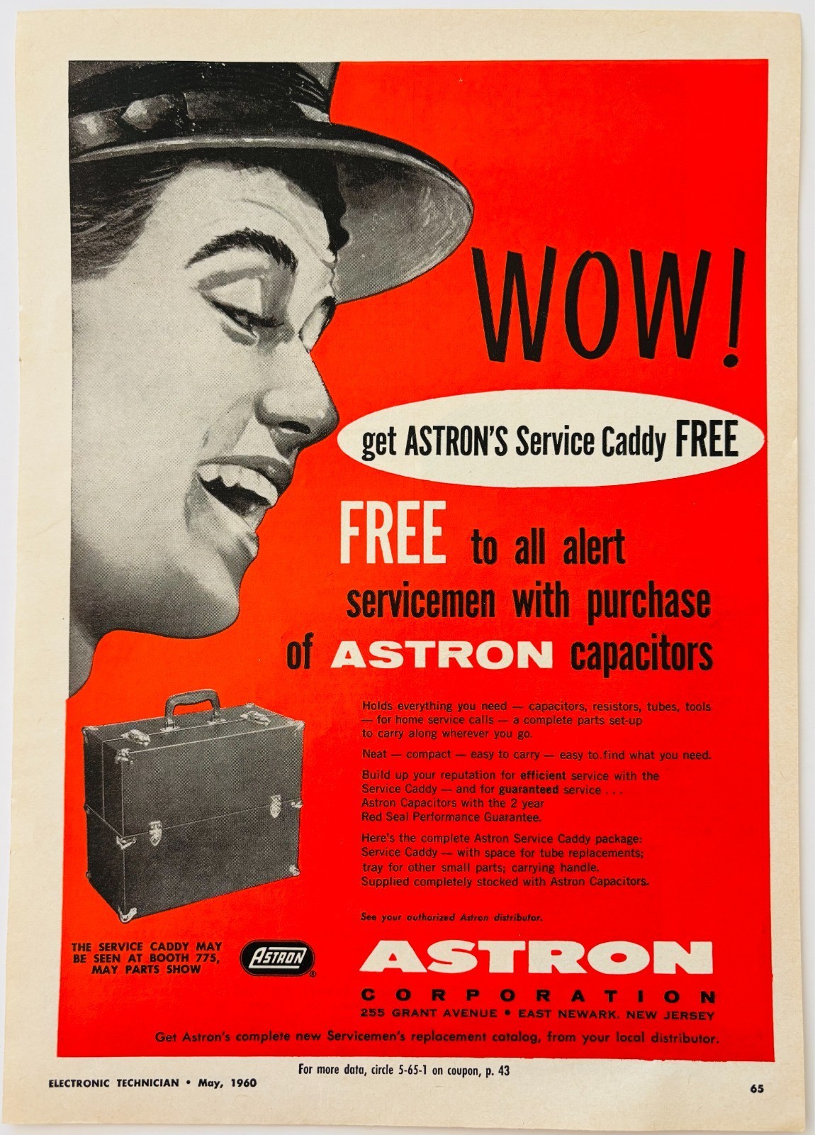 1960 Astron Service Caddy Tubes Diodes Advertisement Vintage TV Radio DWU16D