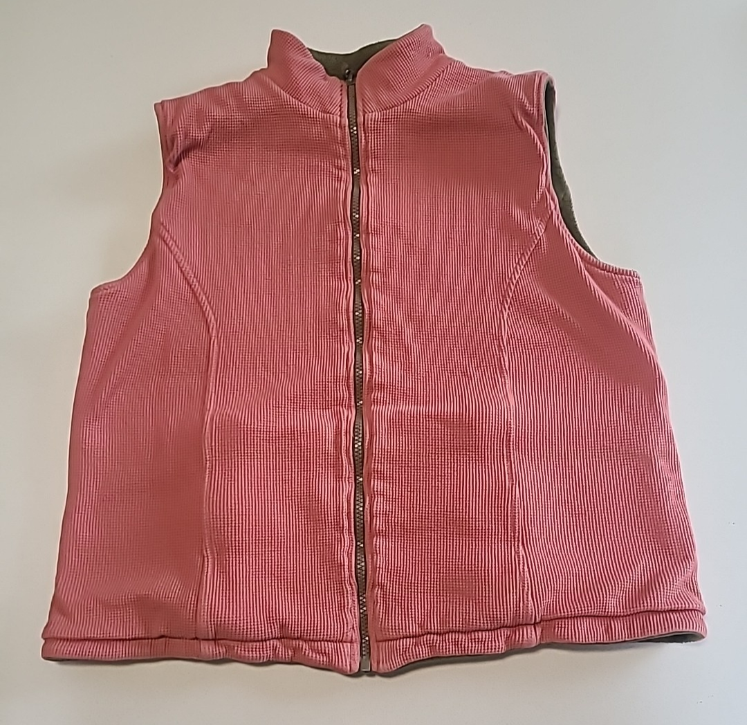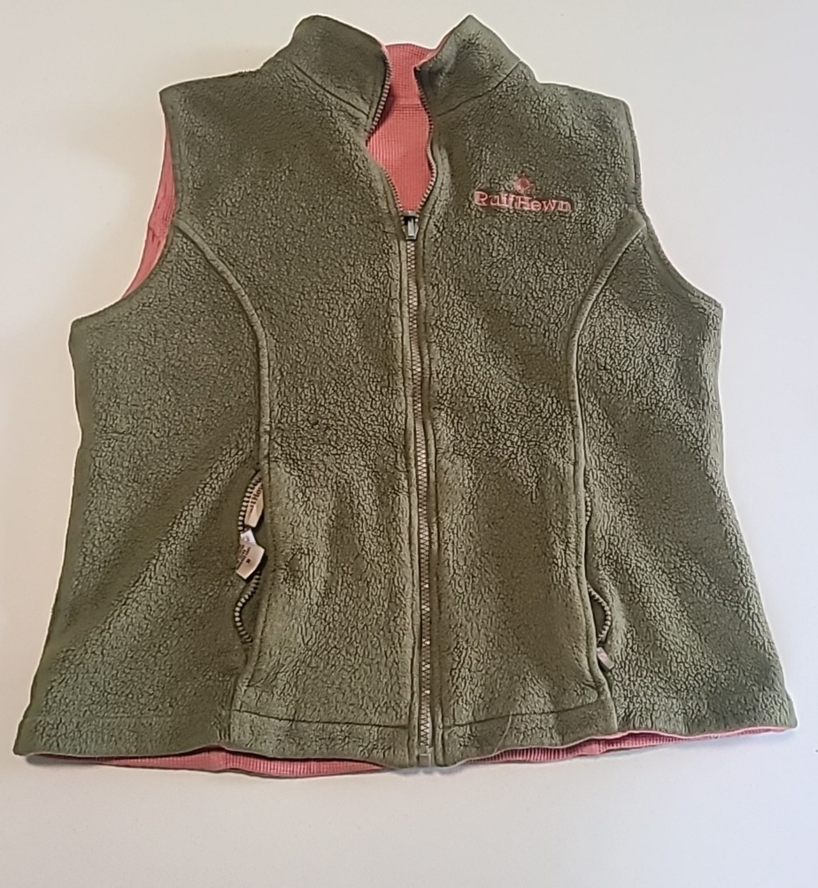 Ruff Hewn Vest Women's Med Olive Green Pink Reversible Fleece Full Zip Pockets