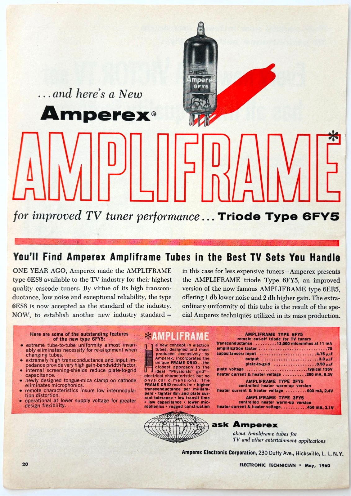 1960 Amperex Ampliframe Tube Advertisement and similar items