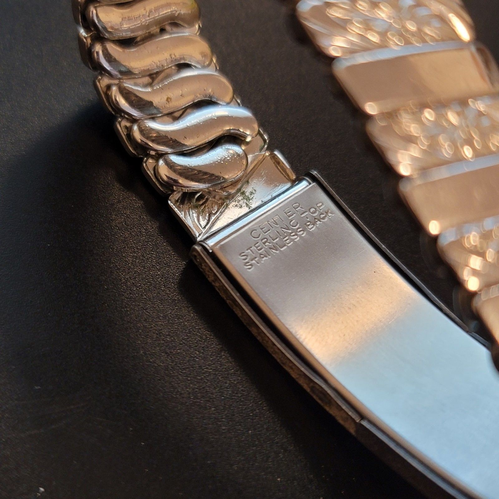 Material: Sterling silver, stainless steel, gold-tone accent panel