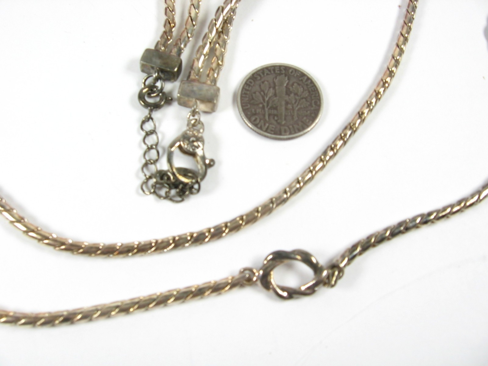 MEASUREMENTS: Length of the necklaces is 28" for the longest strand but can be adjusted shorter and the largest oval "knot" link measures 5/8" in length