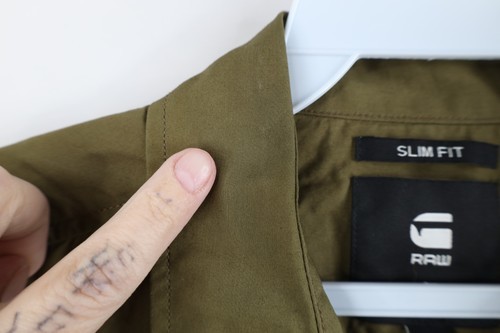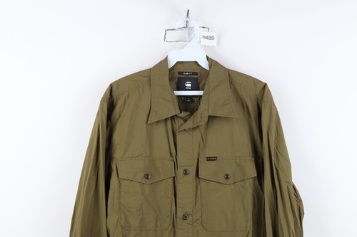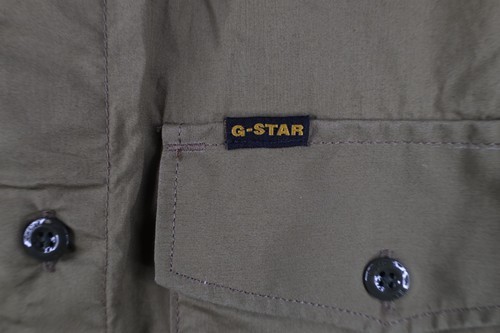 G Star Raw Mens Size Large Spell Out Double Pocket Collared Button Shirt Green