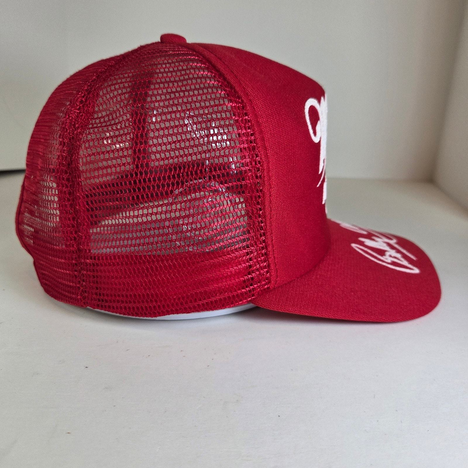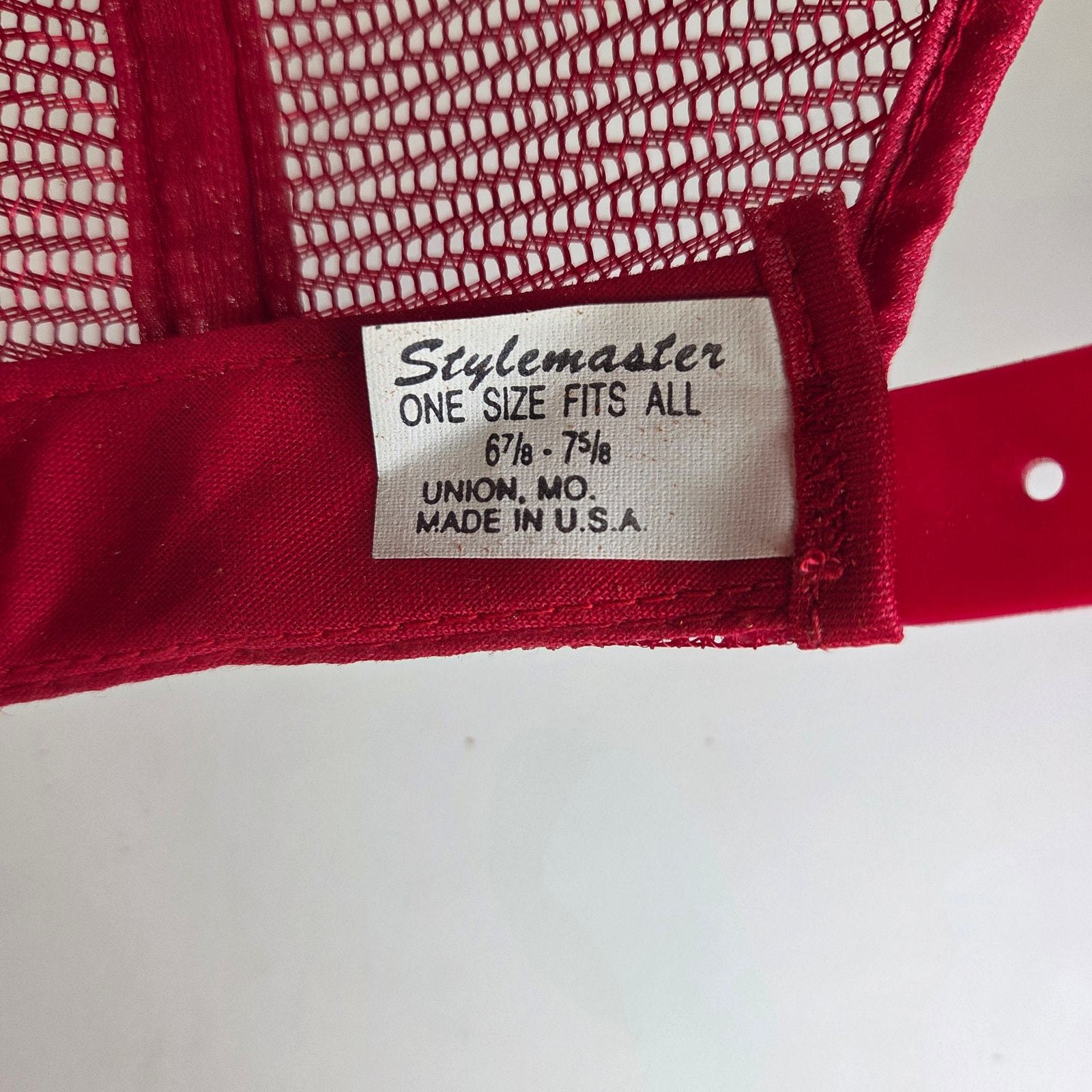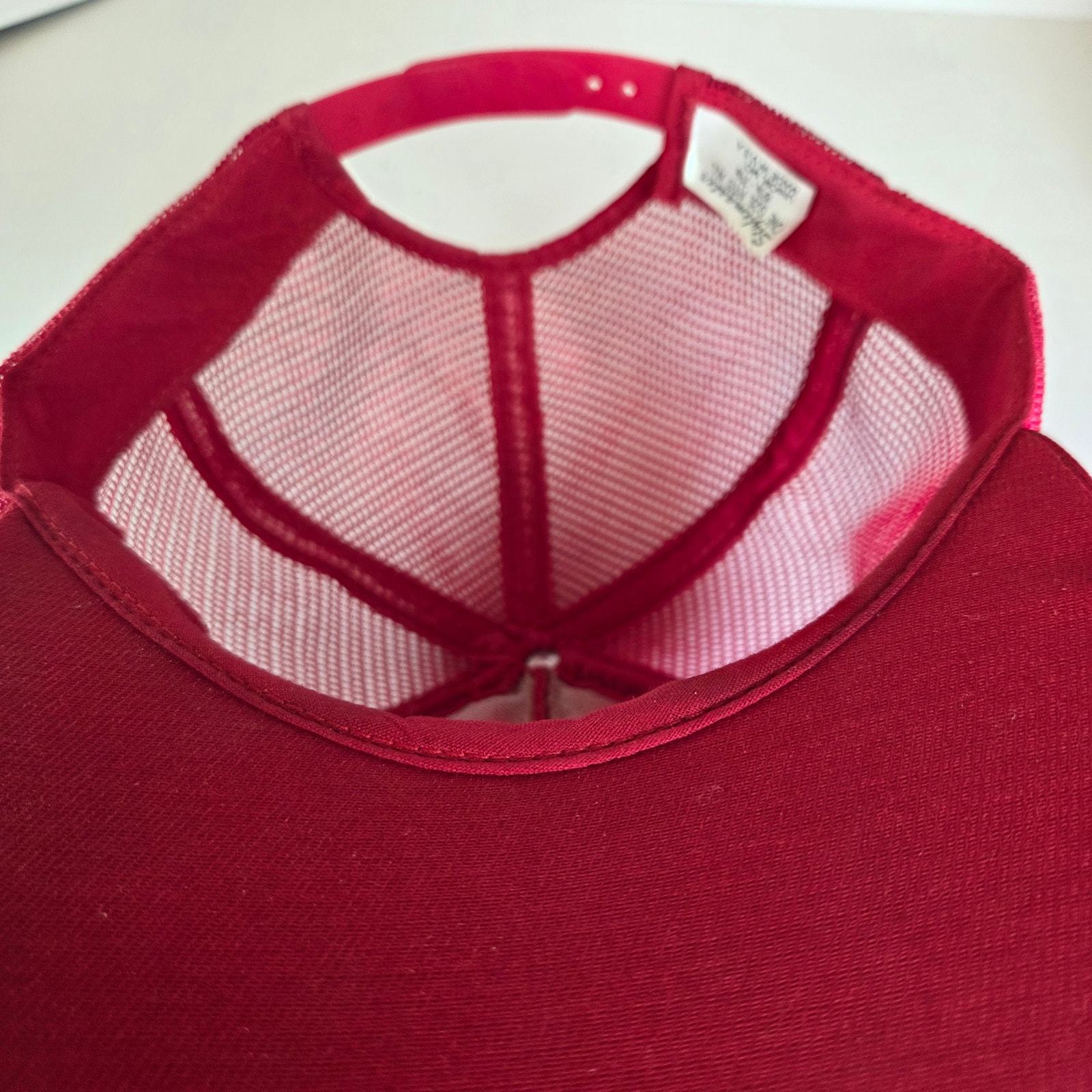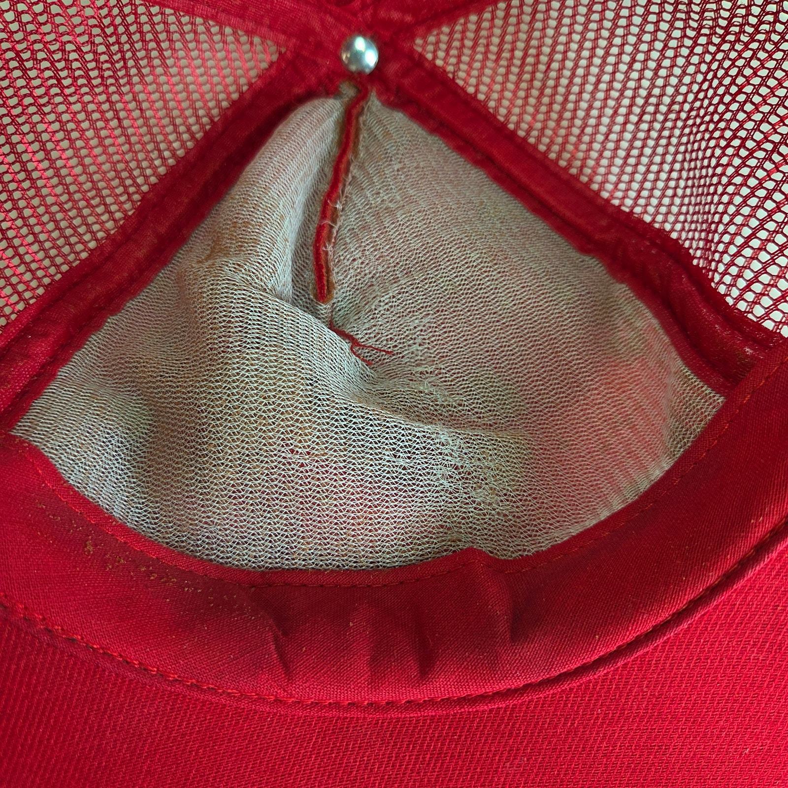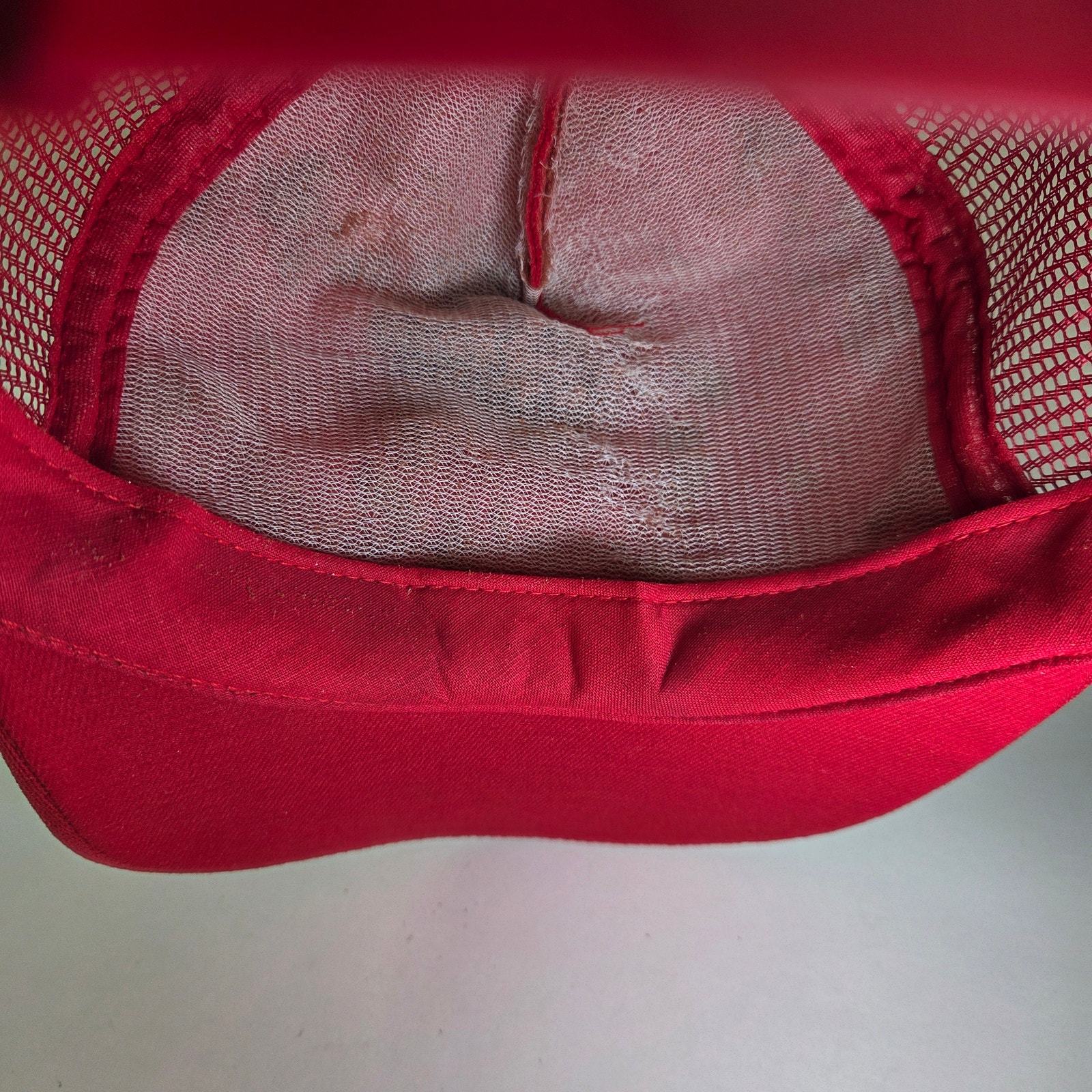 Please note: the interior foam lining has deteriorated (foam rot), which is very common for vintage hats of this age. The exterior remains in good condition with sharp embroidery, intact mesh, and functional snapback.