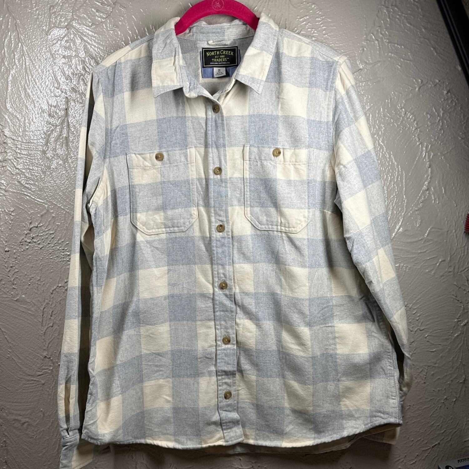 North Creek White Long Sleeve Button Up Cotton Plaid Shirt Mens Size MediumThis item has been cleaned pers used clothing policy.