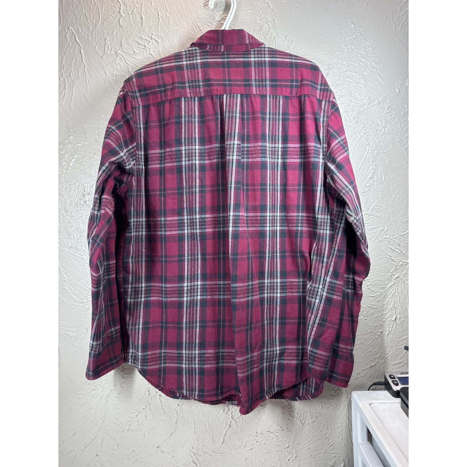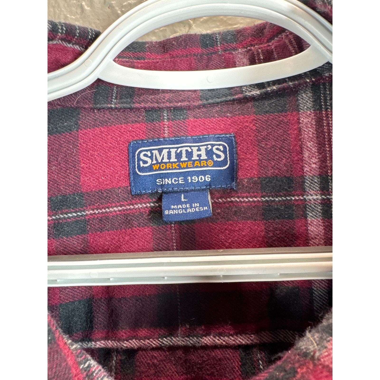 Smiths Workwear Flannel Button Down Shirt Black Plaid Red Mens Sz Large
