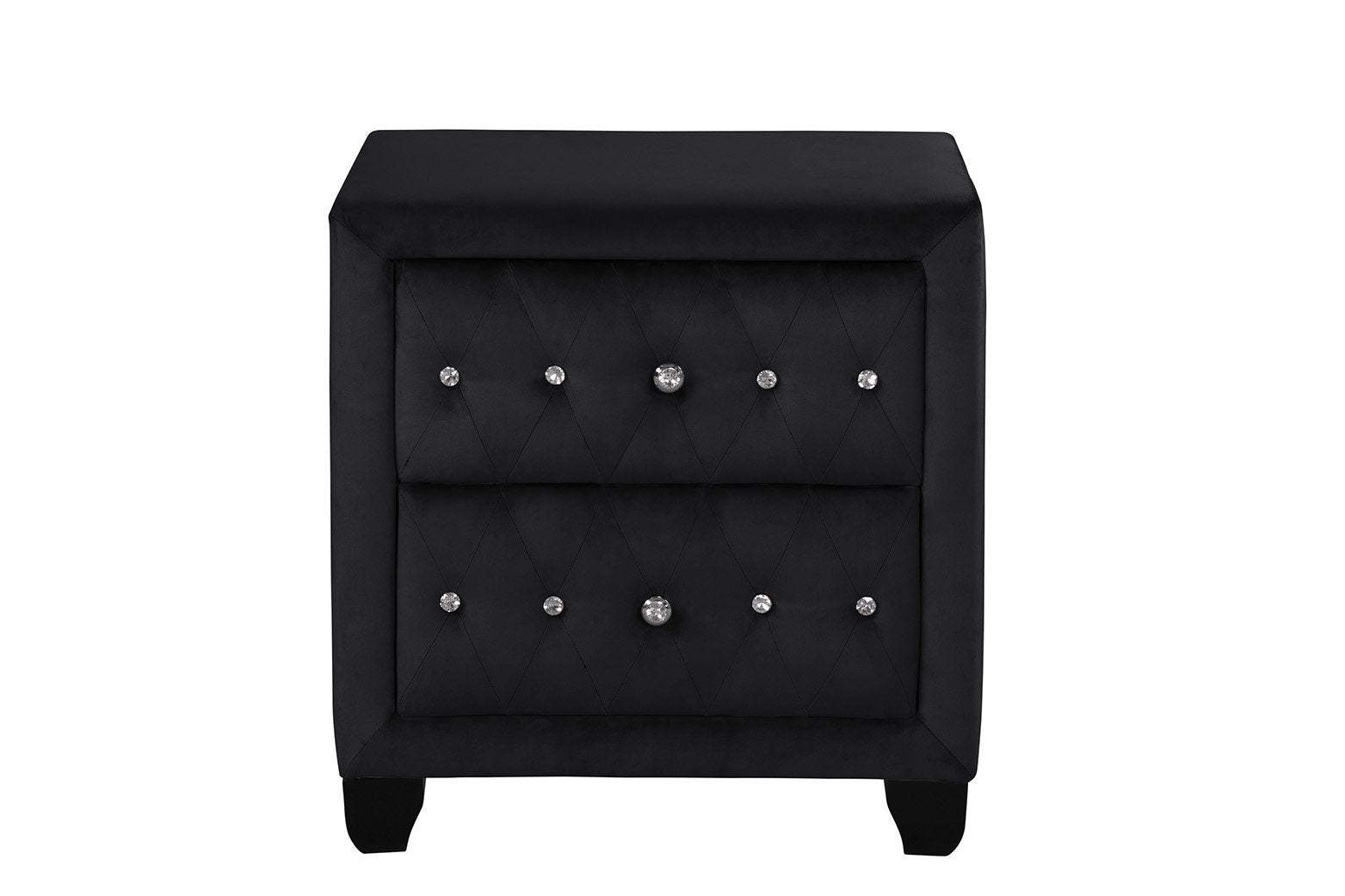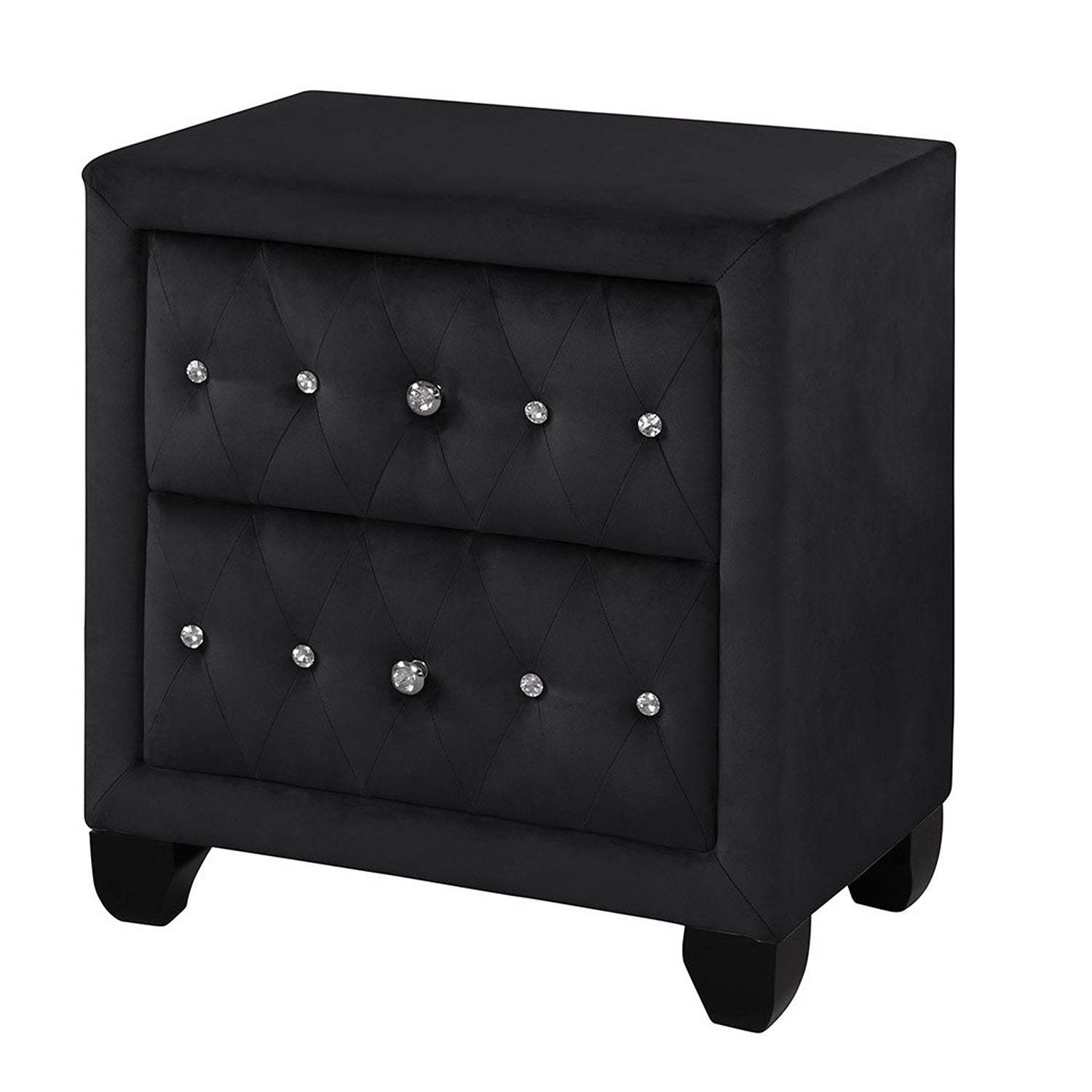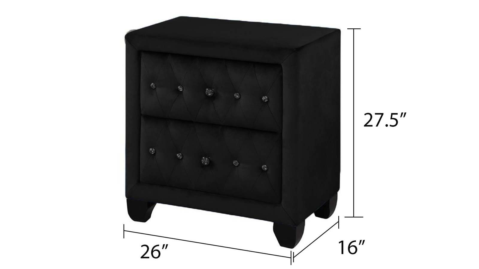 Introducing the Velvet Fabric Upholstered Crystal Tufted 2-Drawer Nightstand, a seamless blend of functionality and sophistication. This exquisite piece features two spacious drawers adorned with crystal-accented drawer pulls, offering ample storage space for your bedside essentials while adding a touch of elegance to your bedroom decor. Crafted with care and attention to detail, this nightstand is upholstered in sumptuous velvet fabric, adding a luxurious texture to your space. The crystal tufted detailing on the drawers enhances its glamorous appeal, making it a standout feature in any bedroom setting. Upgrade your bedside with the Velvet Fabric Upholstered Crystal Tufted 2-Drawer Nightstand and indulge in both style and functionality every day and night.