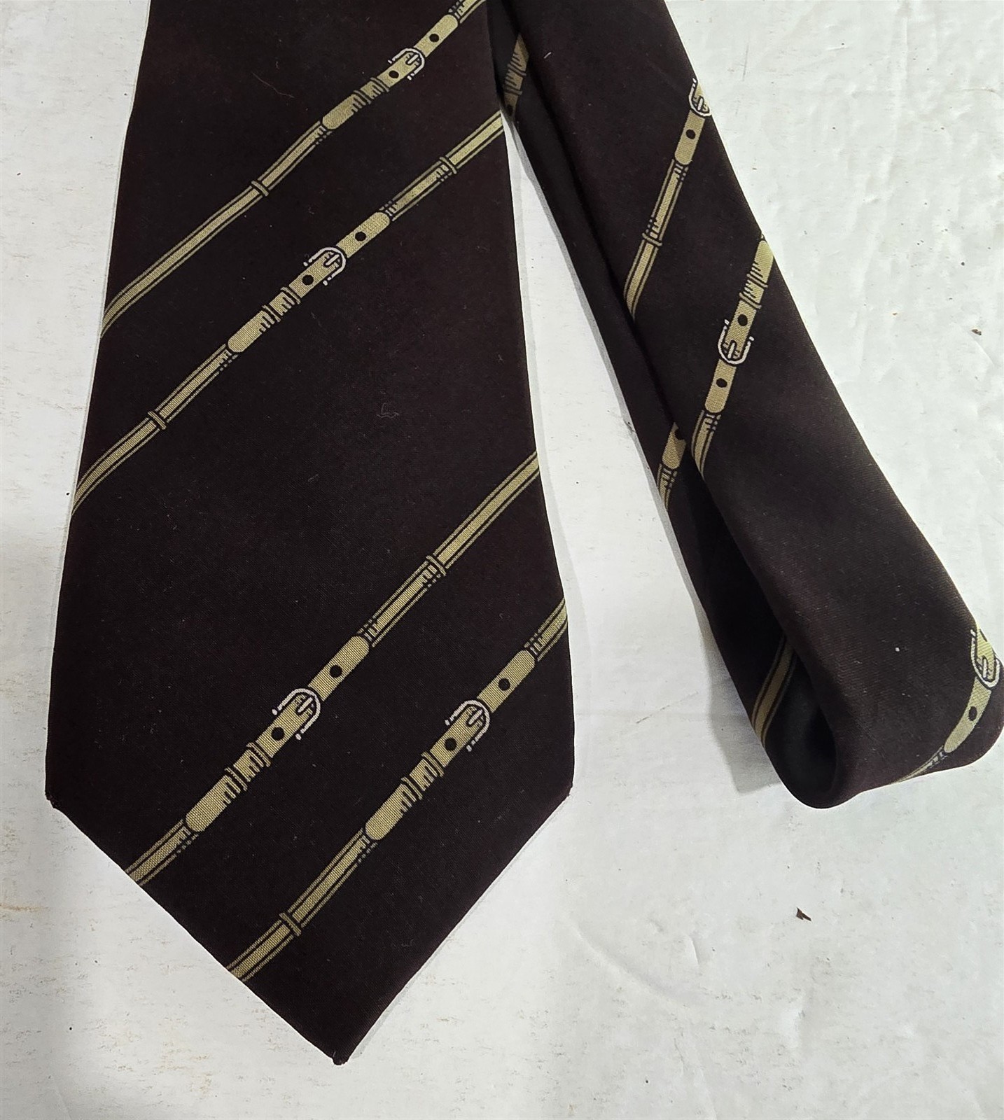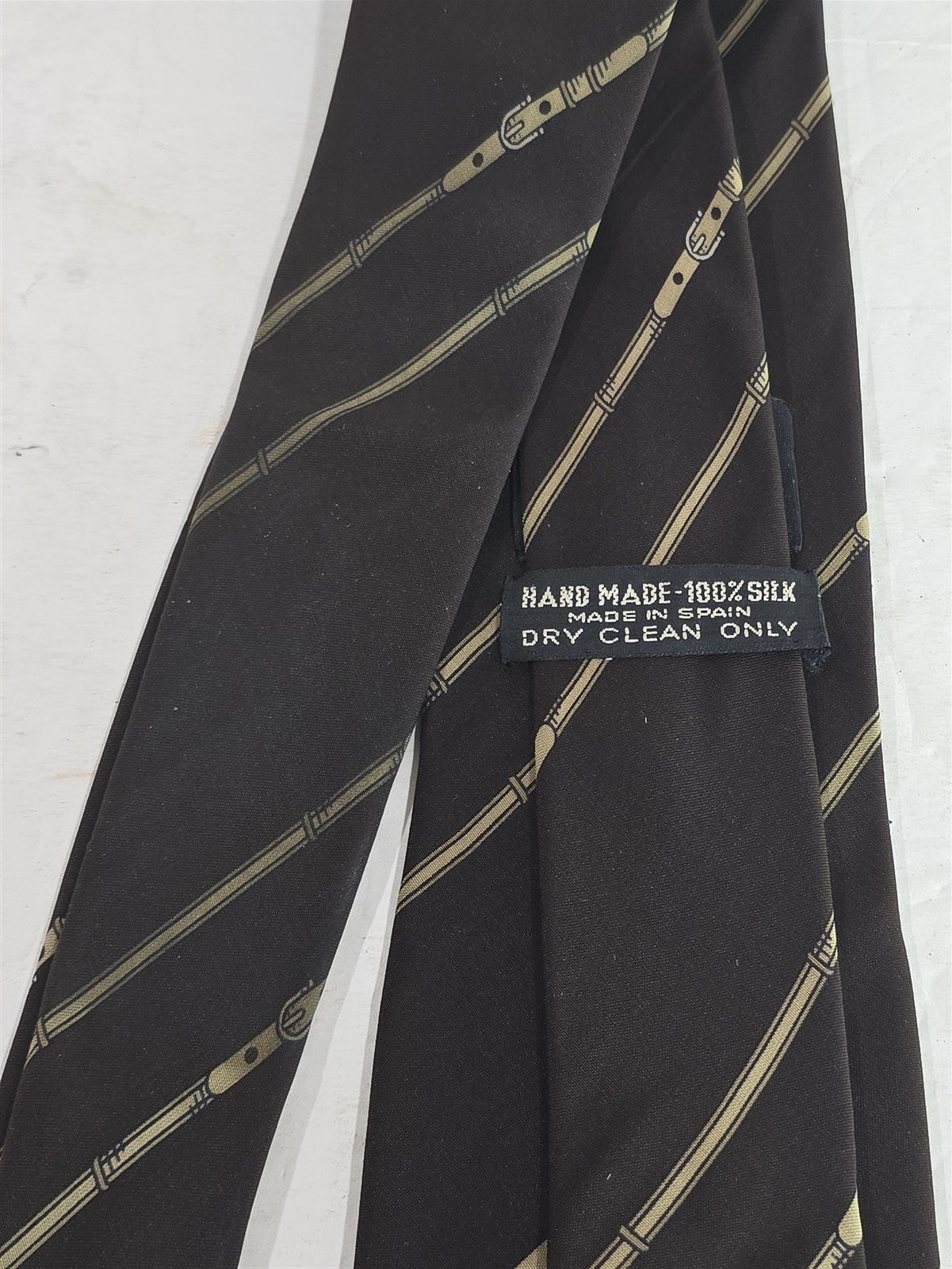 Derby Club Dark Brown Belt Pattern 100% Silk Mens Necktie Neck Tie Made in Spain