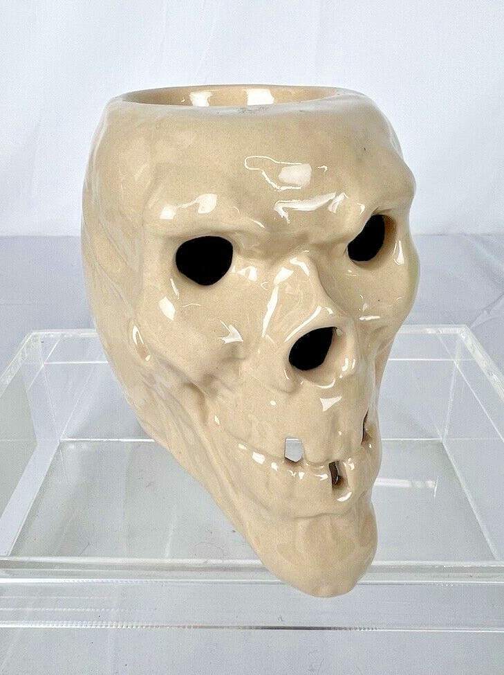 Vintage Unmarked Beige Ceramic Tiki Style Skull Mug Is Possibly Tepco Pottery