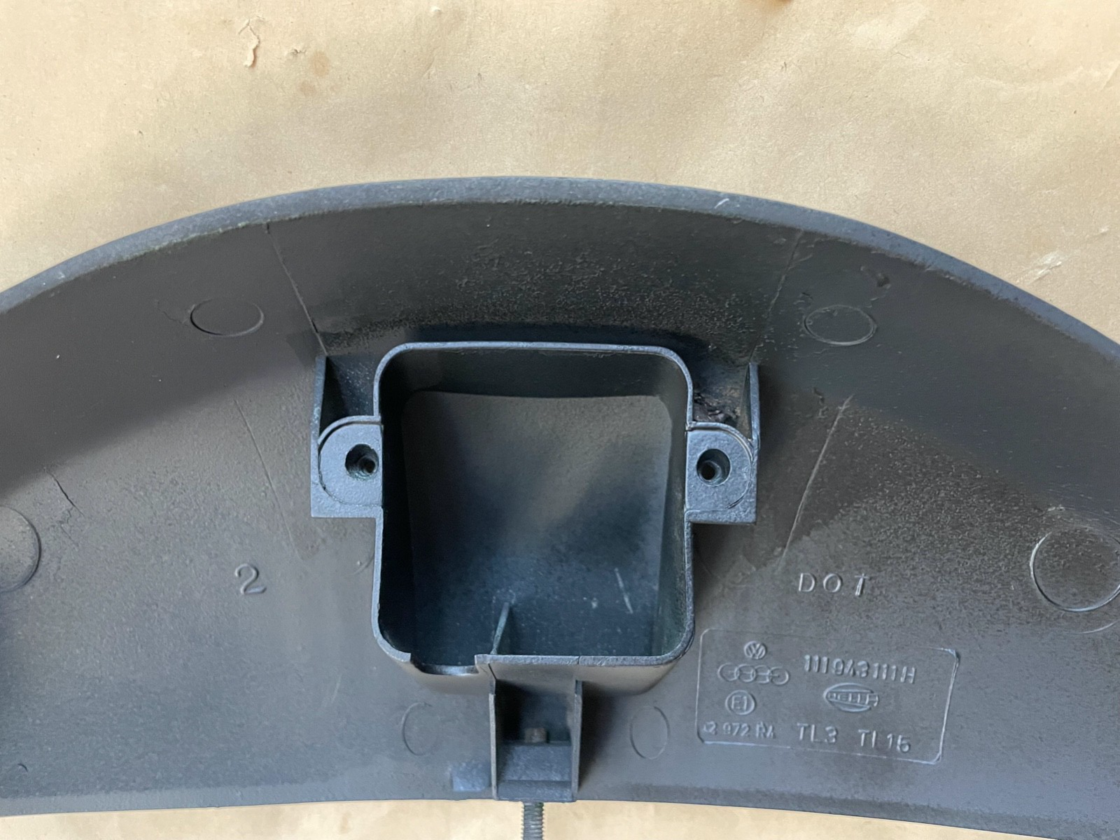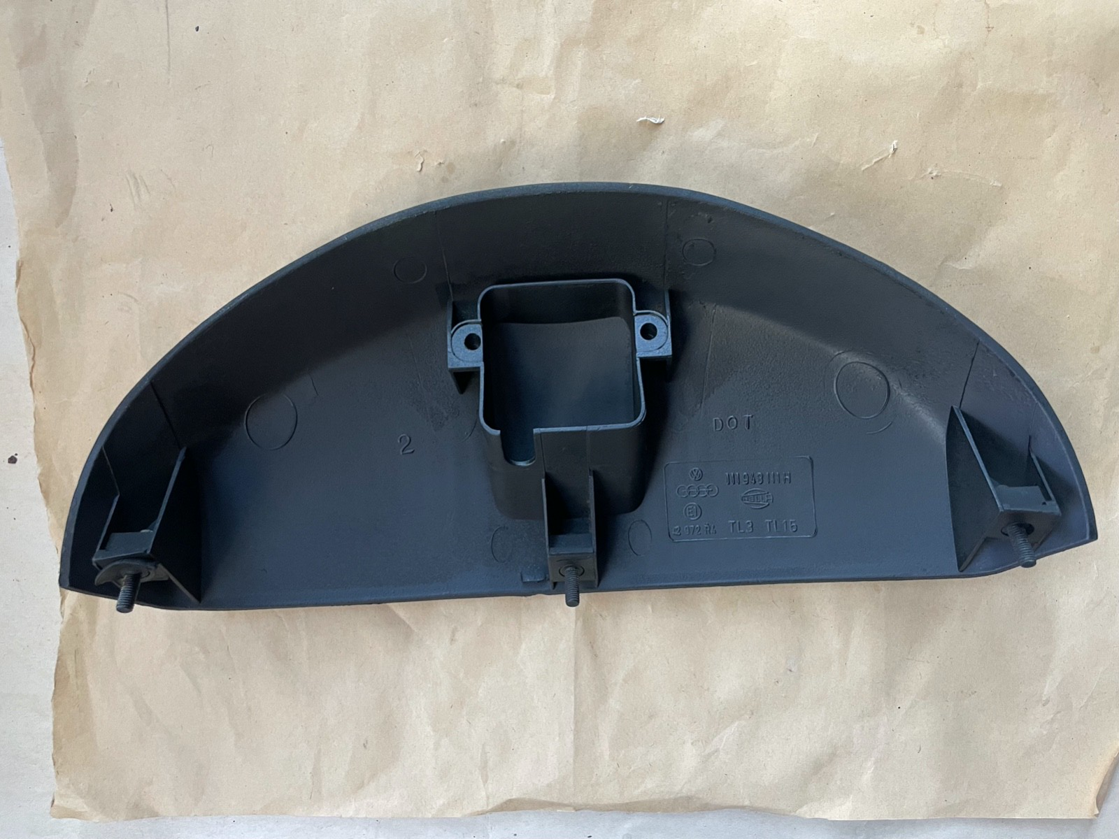 VW Convertible Beetle License Plate Light Housing Cover, Late 1970's. OE HELLA