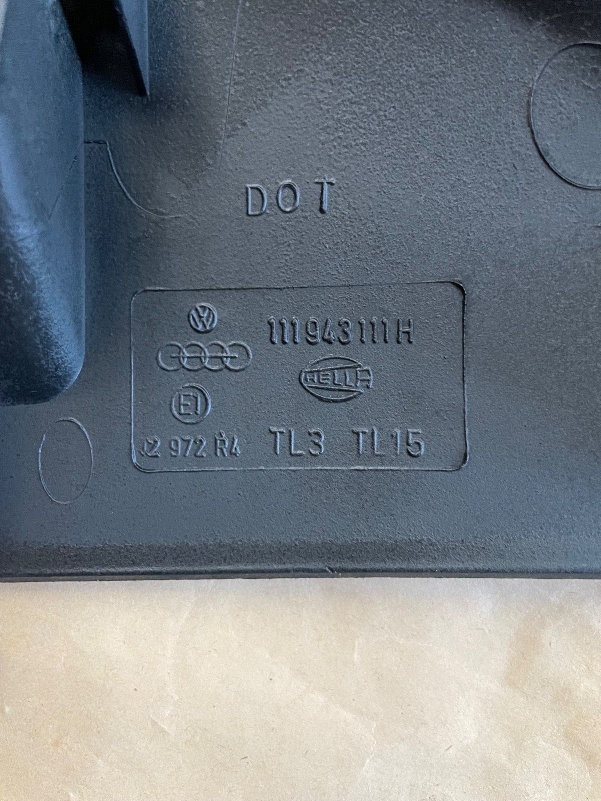 Original VW Convertible Beetle rear License Plate Housing Light Cover. HELLA light weight plastic Housing for your late 1970's vert. All 3 mounting screws are in place (see 3rd pic). Good condition for age. Made in Germany. Black, but sand and re-paint any color.