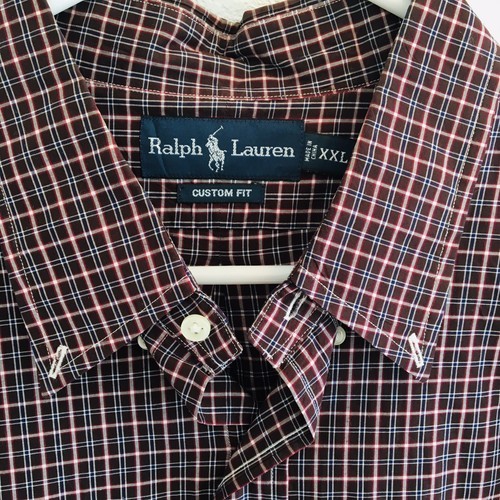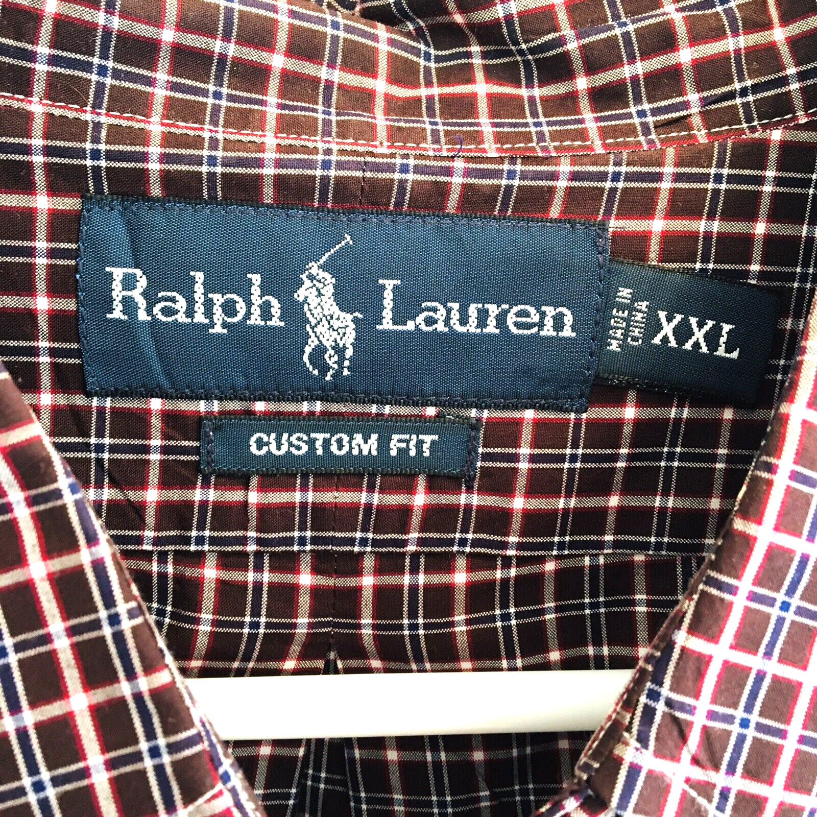 Ralph Lauren Shirt XXL Burgundy Plaid Long Sleeve Custom Fit Button Down 2XL Men EUC