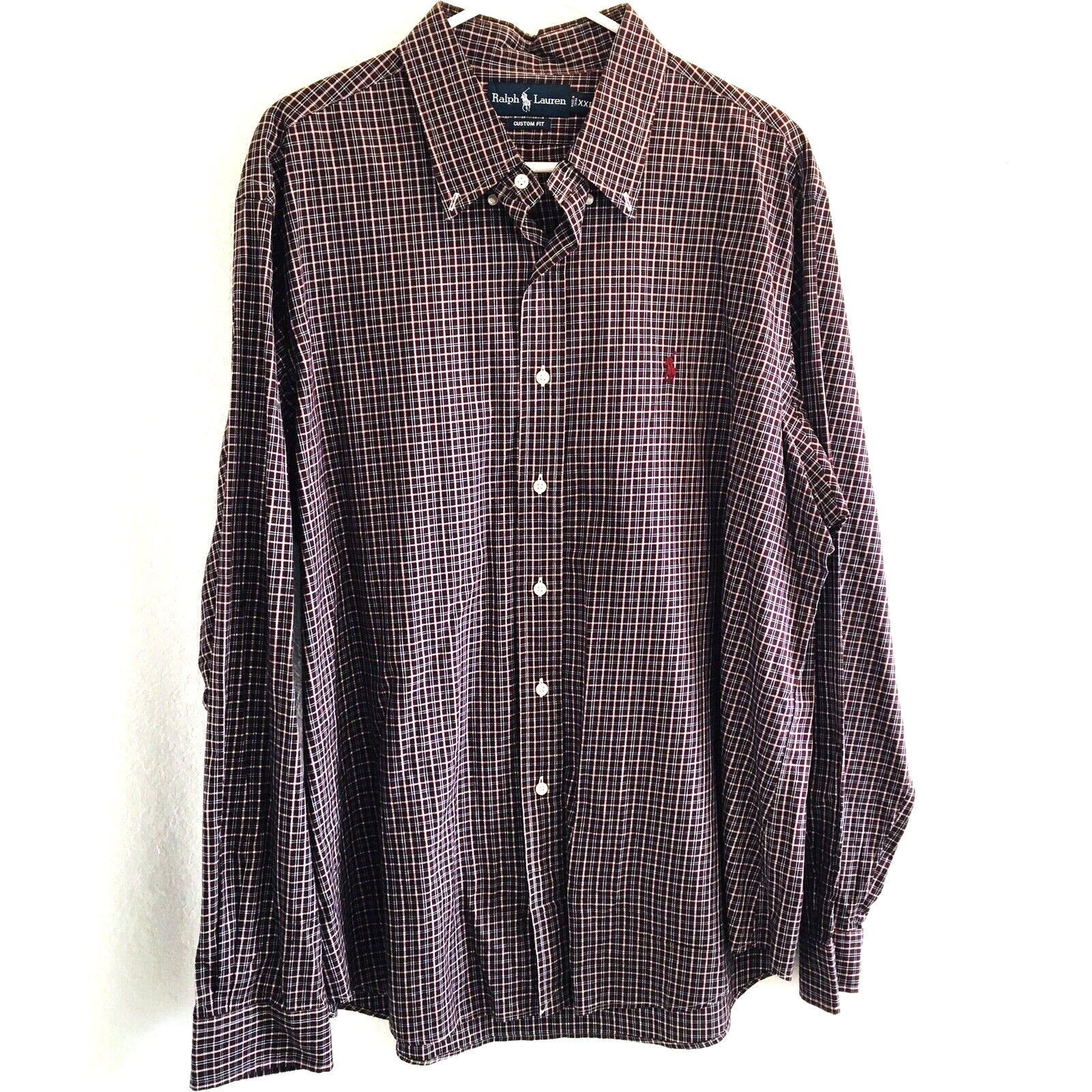 Ralph Lauren XXL Burgundy Plaid Long Sleeve Custom Fit Button Down 2XL Men Shirt