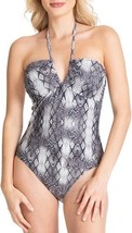 Rachel Roy Mamba Ruched Halter One-Piece Swimsuit SZ XL Grey