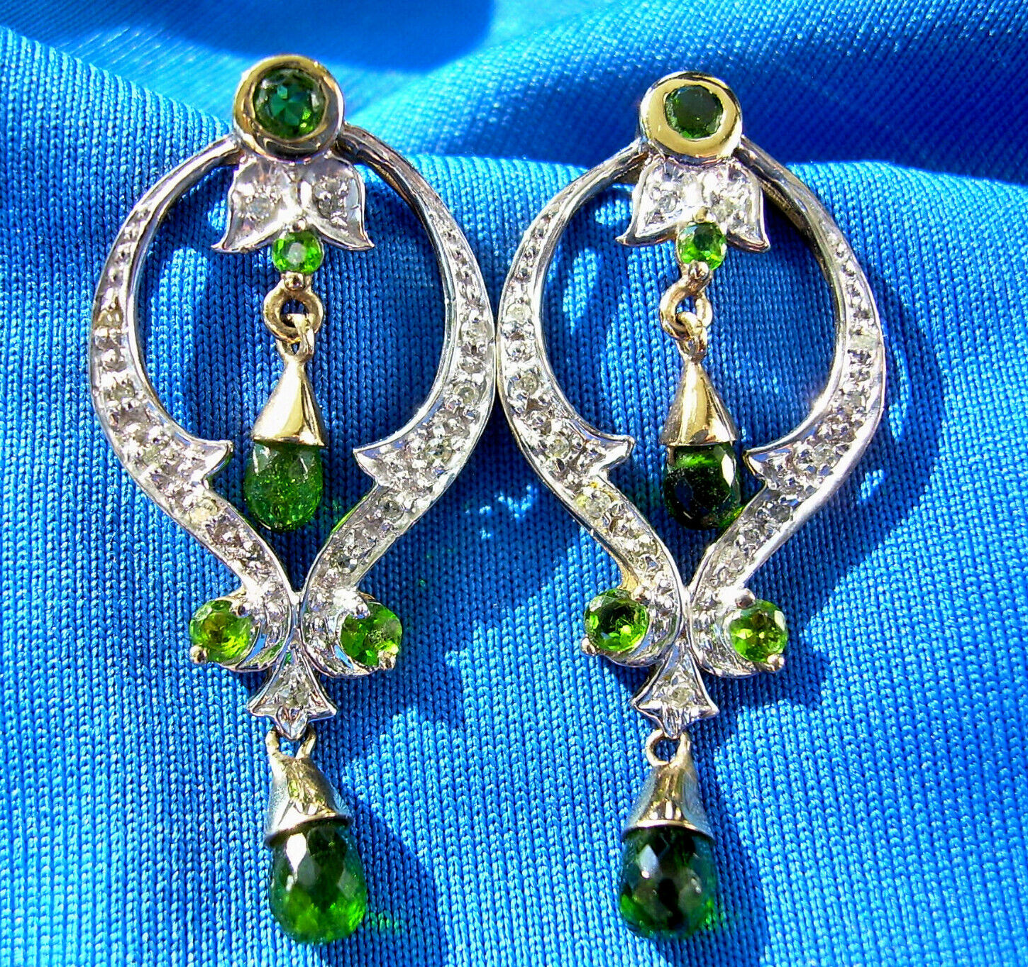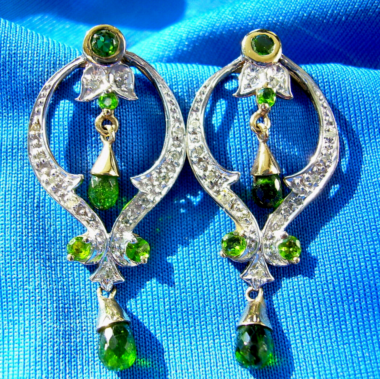 Exotic deco peridot and diamond Gatsby style dangles drops.