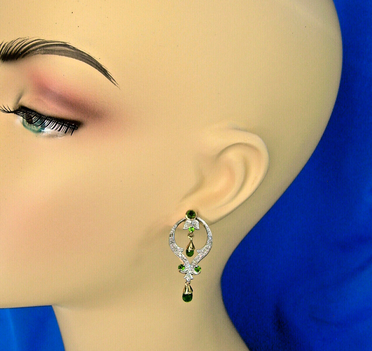 Earth mined Diamond Peridot Deco Earrings Fine Vintage Gatsby Style Dangles Drop
