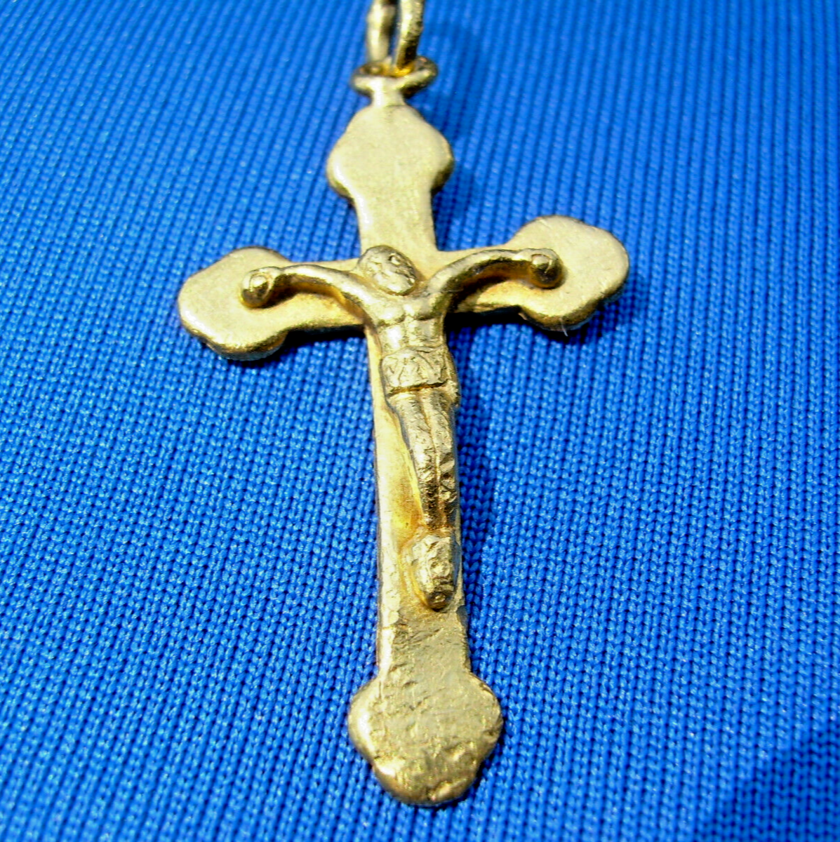 Antique Solid 22k Gold Cross Pendant Rare Find Christianity Charm Roman Artifact
