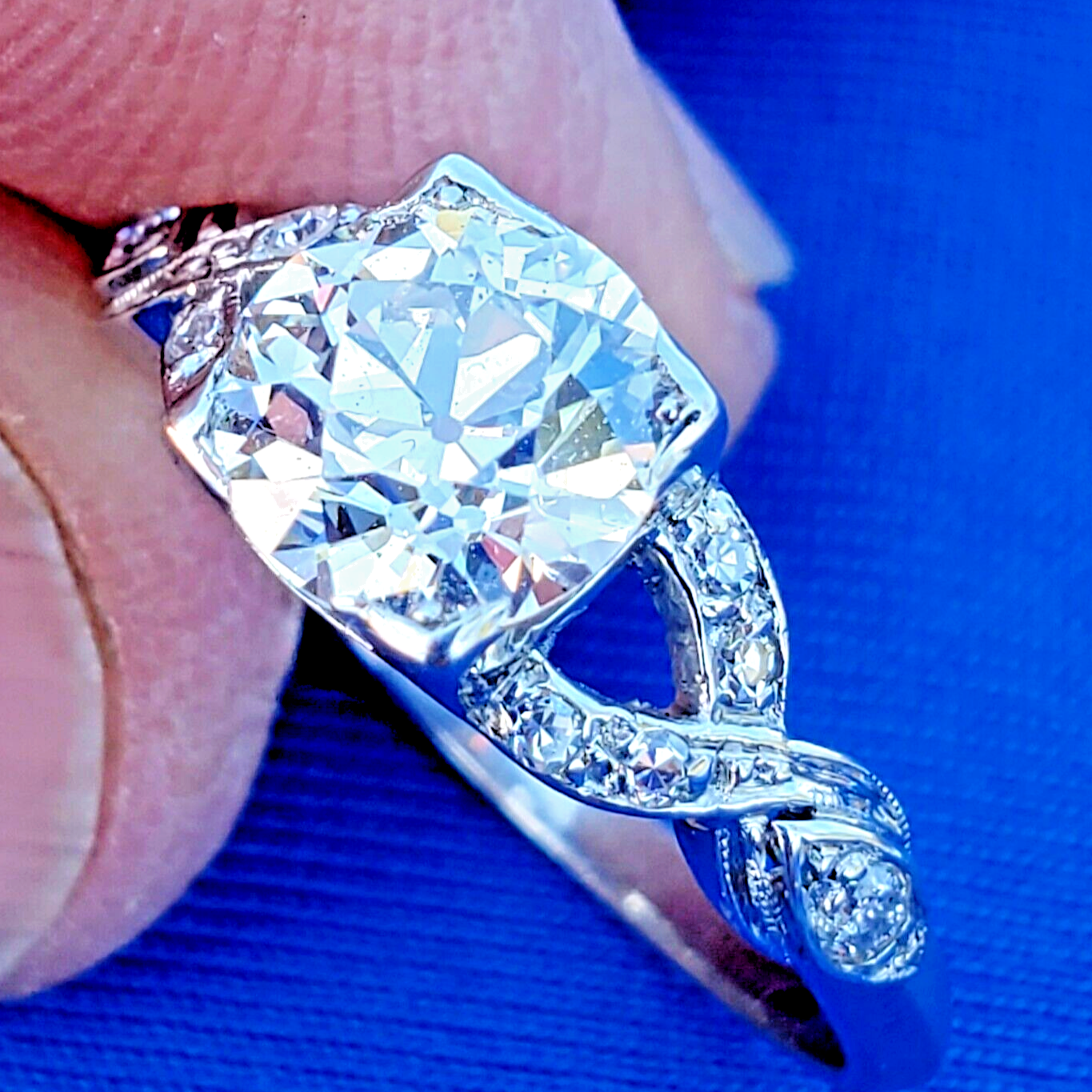 Earth mined Diamond Deco Engagement Ring 1.39 carat Vintage Platinum Solitaire 7