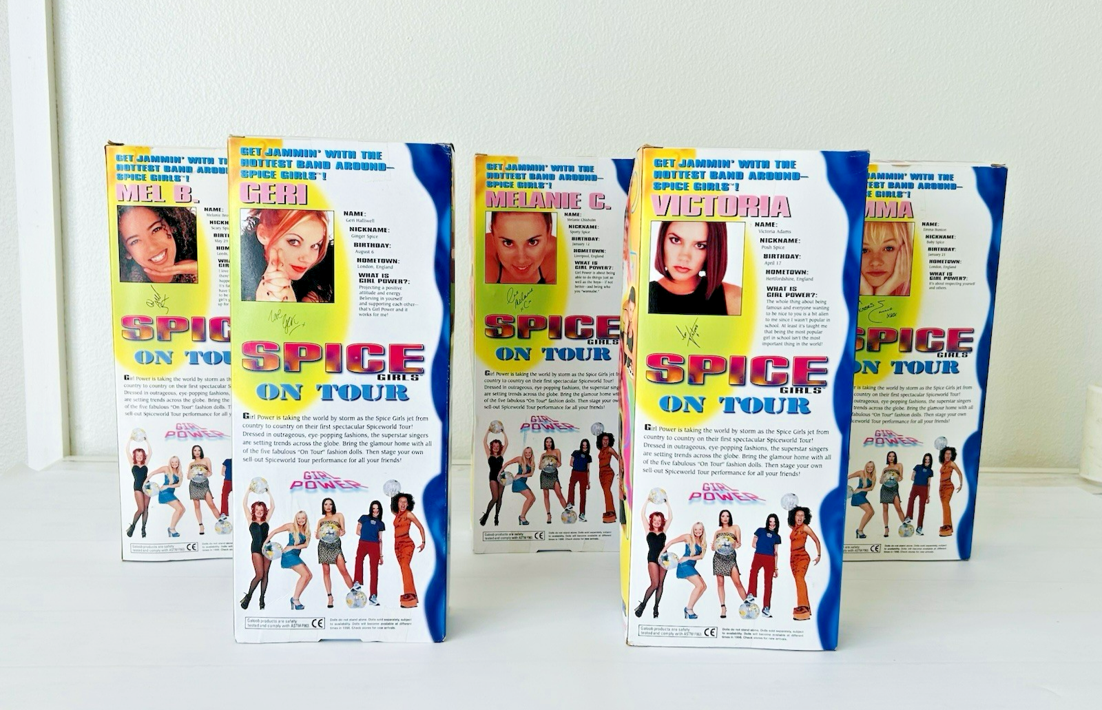 Spice Girls On Tour Dolls Complete Set of 5 Galoob 1998 New & Sealed Box Vintage